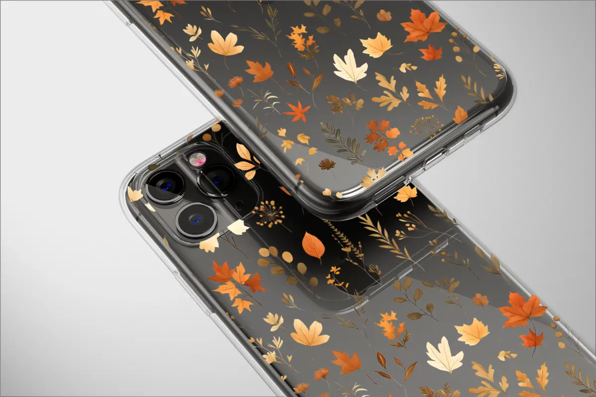Wrap your everyday essentials in the serene beauty of a crisp autumn night with this captivating botanical artwork. A rich tapestry of fall's finest treasures unfolds across a dramatic, deep black background, creating a stunning visual contrast that is both elegant and cozy. Delicate leaves in a symphony of warm hues—from fiery burnt orange and rustic sienna to soft ochre and gentle cream—appear to float and dance in a gentle, unseen breeze. Detailed sprigs, clusters of tiny berries, and whimsical foliage are scattered throughout, each element painted with a soft, watercolor-like touch that adds to the design's dreamy, artistic feel. This pattern evokes the feeling of a peaceful woodland stroll at dusk, the crunch of leaves underfoot, and the comforting embrace of your favorite sweater. It’s a sophisticated tribute to the harvest season, perfect for the nature lover, the artist at heart, or anyone who finds joy in rustic charm and dark academia aesthetics. Carry a piece of the forest's quiet magic with you, and let this elegant botanical pattern bring a touch of nature-inspired sophistication and whimsical warmth to your daily life.