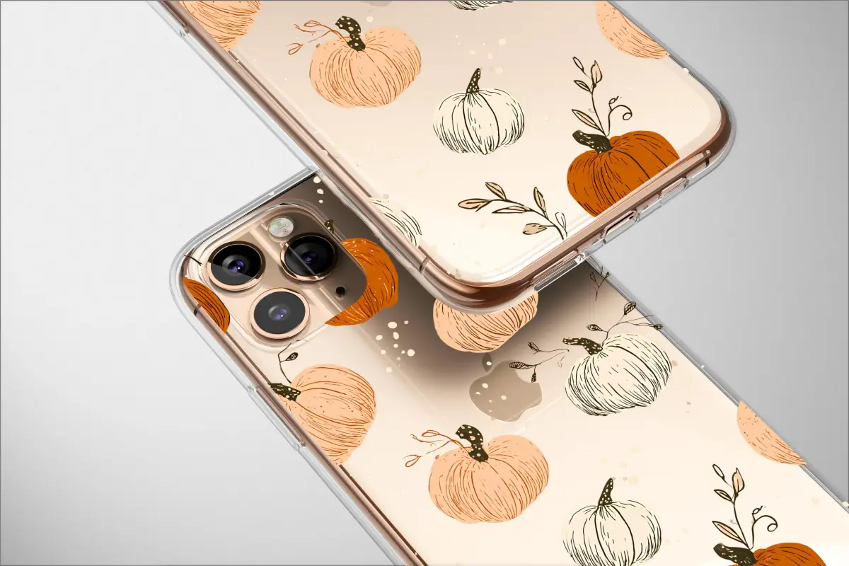 Wrap your daily companion in the cozy, whimsical magic of autumn with this beautifully illustrated design, a perfect way to celebrate your love for the coziest season. Picture yourself on a crisp fall day, surrounded by the warm, earthy glow of a pumpkin patch—that's the feeling we've captured in this charming pattern. Each pumpkin is rendered in a delicate, minimalist line art style, scattered artfully in soft shades of peach, rustic orange, and creamy white, tangled with elegant, hand-drawn vines. This unique boho aesthetic turns your essential tech into a statement piece of wearable art. It’s the perfect accessory for sipping pumpkin spice lattes, visiting apple orchards, and enjoying the golden hour light. Let your personal style shine by choosing between two gorgeous options: a crystal-clear backdrop that lets the original color of your iPhone, Samsung Galaxy, or Google Pixel peek through, or a deep, moody slate grey that offers a dramatic contrast, perfect for cool autumn nights and Halloween vibes. This isn't just a stylish shield for your device; it's a little piece of fall you can hold in your hand, making it a wonderful Thanksgiving gift or a special treat to capture the spirit of the season.
