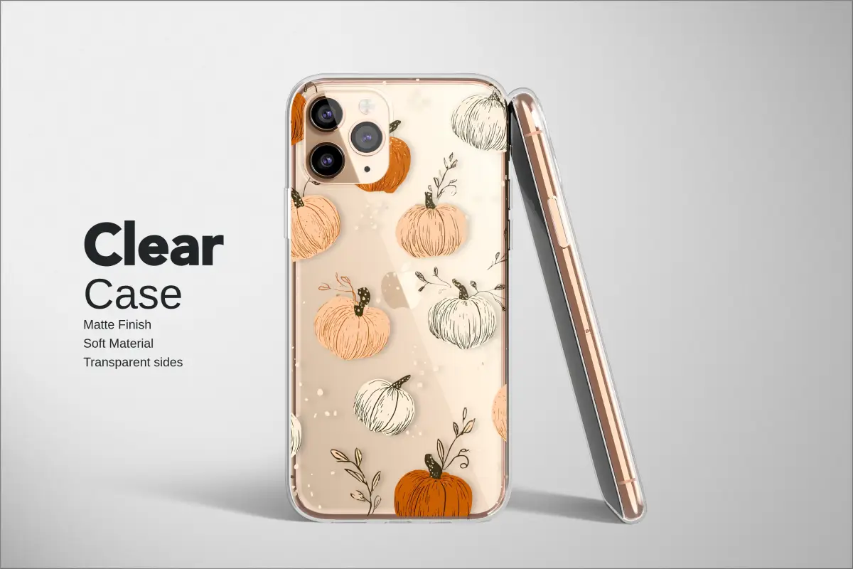 Wrap your daily companion in the cozy, whimsical magic of autumn with this beautifully illustrated design, a perfect way to celebrate your love for the coziest season. Picture yourself on a crisp fall day, surrounded by the warm, earthy glow of a pumpkin patch—that's the feeling we've captured in this charming pattern. Each pumpkin is rendered in a delicate, minimalist line art style, scattered artfully in soft shades of peach, rustic orange, and creamy white, tangled with elegant, hand-drawn vines. This unique boho aesthetic turns your essential tech into a statement piece of wearable art. It’s the perfect accessory for sipping pumpkin spice lattes, visiting apple orchards, and enjoying the golden hour light. Let your personal style shine by choosing between two gorgeous options: a crystal-clear backdrop that lets the original color of your iPhone, Samsung Galaxy, or Google Pixel peek through, or a deep, moody slate grey that offers a dramatic contrast, perfect for cool autumn nights and Halloween vibes. This isn't just a stylish shield for your device; it's a little piece of fall you can hold in your hand, making it a wonderful Thanksgiving gift or a special treat to capture the spirit of the season.