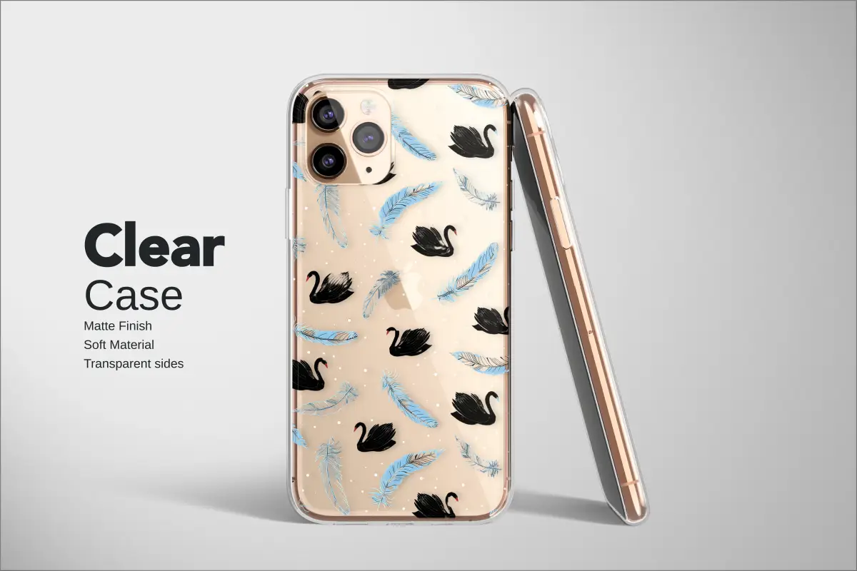 Immerse yourself in a dreamscape of midnight elegance with this enchanting artistic design, perfect for personalizing your favorite tech. Inspired by the silent poetry of a moonless winter's night, this captivating pattern features majestic black swans gliding through a dark celestial expanse. Their graceful, almost silhouetted forms create a stunning contrast against the shower of ethereal, icy blue feathers that float weightlessly around them, each one captured in exquisite detail as if kissed by frost. The deep black background is scattered with pinpoints of white, like a first gentle snowfall or a distant starfield, enhancing the mystical and whimsical atmosphere. This moody and elegant artwork wraps your most essential daily device in a scene of dark, fairytale beauty, making it a true statement of unique style. It's an impeccable choice for lovers of dark cottagecore, gothic romance, bird-watching, and witchy aesthetics. This isn't just a simple cover; it’s a piece of wearable art that provides a touch of magic to your everyday routine. The high-resolution print ensures every subtle detail, from the single touch of scarlet on the swan's beak to the delicate barbs of each feather, is vividly rendered. It makes a thoughtful and artistic gift for anyone who appreciates nature-inspired accessories that tell a story of mystery, elegance, and grace. Adorn your gadget with this beautiful black swan and feather print and carry a piece of nocturnal enchantment with you.