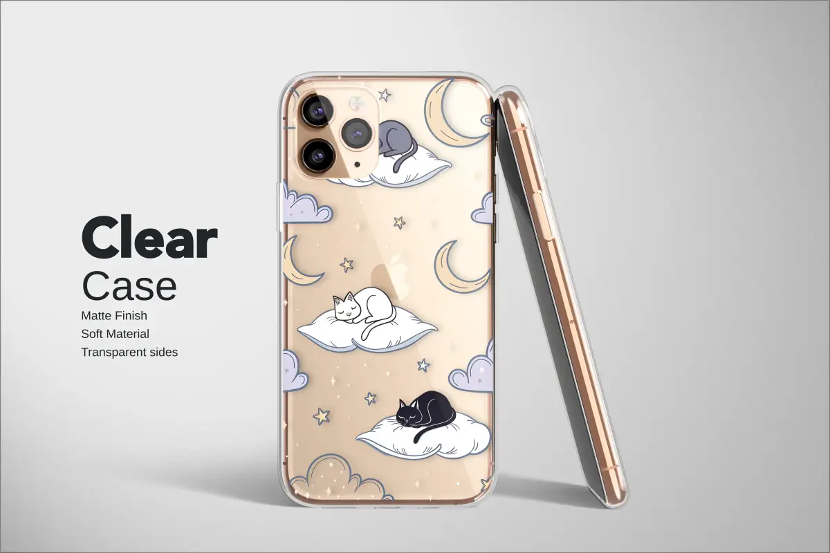 Drift away into a whimsical dreamscape every time you reach for your most-used companion. Imagine a velvet night sky, so deep and serene, wrapping around your daily essential in this enchanting celestial illustration. In this sleepy sky, three peaceful felines—a sleek black shadow, a ghostly white spirit, and a soft grey mist-kitty—are napping on the fluffiest of cloud pillows, each one lost in a sweet slumber. They float gently through the cosmos, surrounded by a gentle scattering of twinkling stars and pale, smiling crescent moons that cast a magical, cozy glow. This dreamy aesthetic is a perfect cat lover gift, blending a cozy cottagecore vibe with a touch of witchy celestial charm that feels both modern and timeless. It’s a portable piece of tranquility, a story whispered from the stars to protect your personal tech. Let this enchanting night sky art bring a dose of peaceful magic to your pocket, making it the ideal unique gift for her, for the daydreamer, the student who loves dark academia, or any stargazing soul who finds comfort in the quiet of the universe. Carry this little world with you and let these sleepy kitties guard your connection to everything with their sweet, silent dreams.