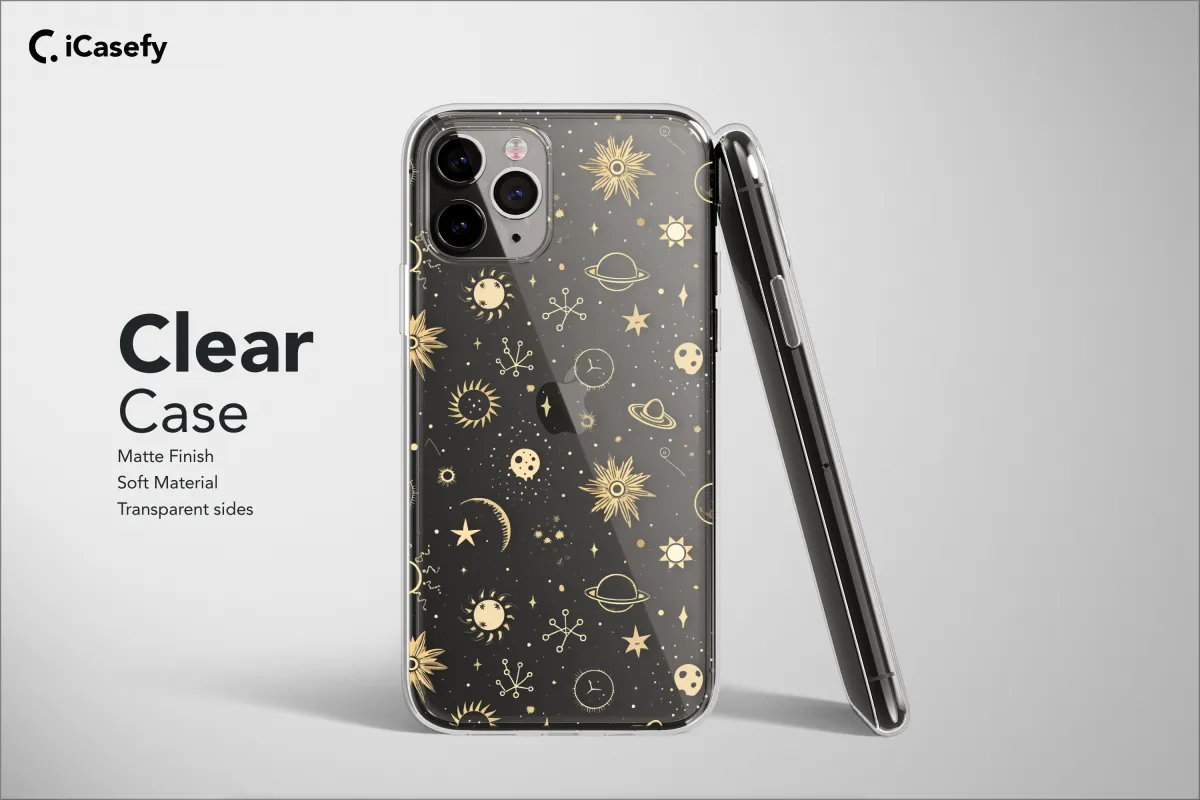 Protect your phone with celestial style with our Clear Celestial Space Plants Sun Moon Phone Case. Perfect for capturing the ethereal beauty of the night sky, this case features a clear design adorned with delicate plant motifs, a mystical crescent moon, and a radiant sun. Compatible with a wide range of iPhone, Samsung, and Pixel models, this phone case keeps your device safe while adding a touch of cosmic flair to your tech accessory.