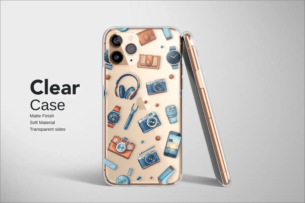 Wrap your favorite tech in the spirit of timeless sophistication with this stunningly detailed design, a masterpiece of classic illustration. A tribute to the modern gentleman's everyday carry, this artwork captures a curated collection of iconic essentials, each piece rendered with artistic flair and a touch of vintage charm. Discover elegant timepieces with minimalist faces and intricate chronographs, their metallic sheen glinting against the deep backdrop. Vintage-style cameras, reminiscent of analog adventures, are ready to capture life's fleeting moments, while supple leather wallets speak of heritage and journeys taken. Sleek, modern headphones float alongside classic pens and finely crafted tools, creating a dynamic collage of passions, hobbies, and pursuits. The rich, masculine palette of deep navy blues, warm cognac leather, and cool metallic silvers pops against a bold, striped black background, creating a compelling visual narrative of style, substance, and preparedness. This isn't just a pattern; it's a statement for the discerning individual who appreciates fine craftsmanship and iconic design. Let this unique, sophisticated art piece elevate your daily gear, adding a layer of classic charm and personal story to your most-used accessory.