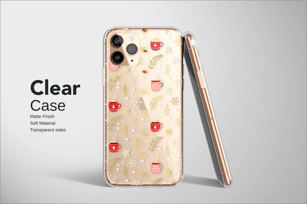 OnePlus 7 Pro Clear Clear Cozy Winter Mug Golden Leaf Abstract Pattern S S Phone Case