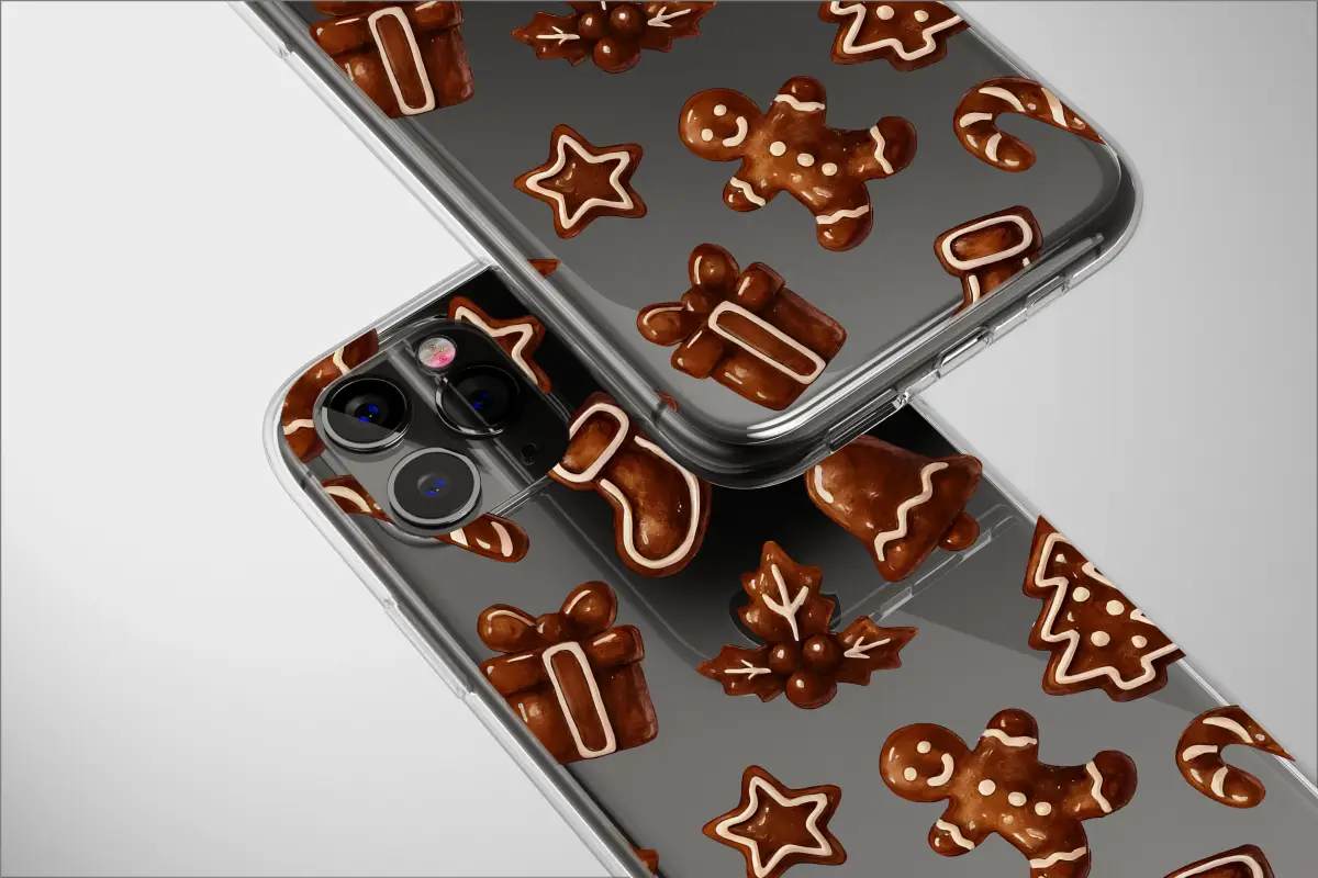 Wrap your device in the sweet charm of the holidays with this festive gingerbread cookie design. This delightful pattern features a variety of classic Christmas treats, including gingerbread men, stars, trees, and stockings, all detailed with classic white icing. The warm, cozy illustration captures the nostalgic joy of holiday baking, making it a perfect accessory for the Christmas season.