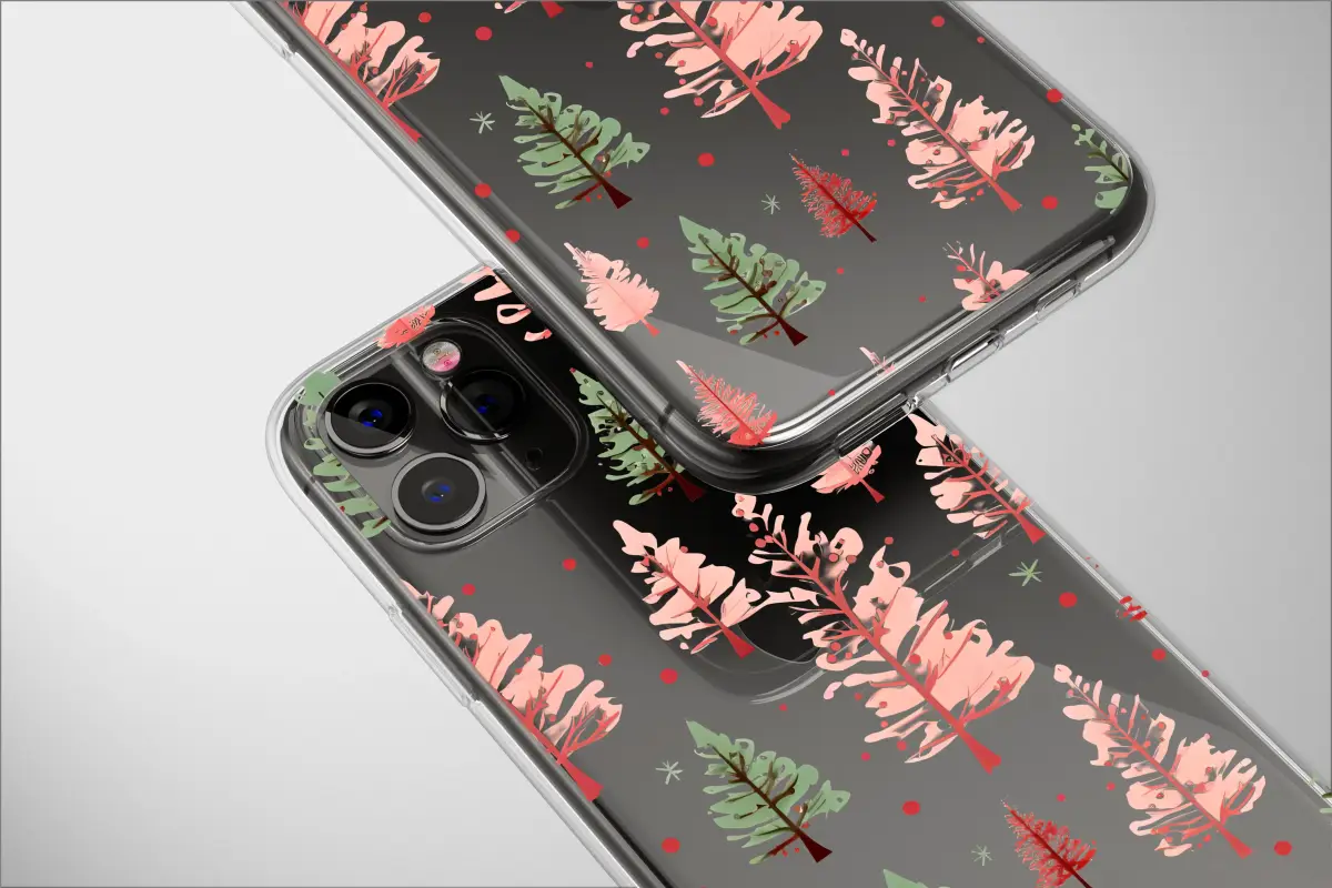 Embrace a unique holiday vibe with this captivating glitch art design. The pattern features stylized Christmas trees in soft pinks and greens, set against a dynamic background of abstract, pixelated color blocks. This modern interpretation of a festive classic blends traditional winter imagery with a contemporary digital aesthetic, creating a standout look that is both artistic and celebratory.