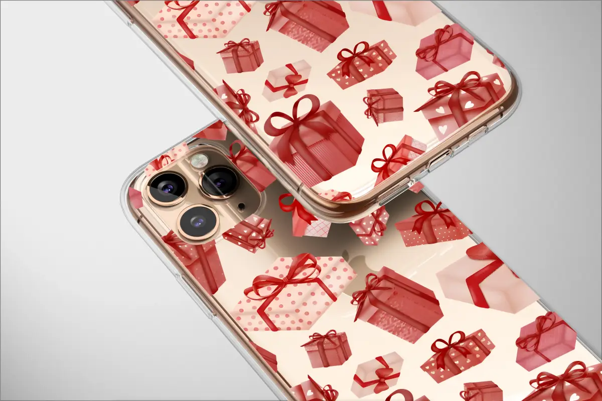 Showcase your style with this unique celebration pattern. This design features an array of beautifully wrapped red and pink gift boxes, complete with festive bows, hearts, and polka dots. The classic, cheerful presents are set against a modern digital glitch background, creating a cool and vibrant contrast between holiday warmth and contemporary abstract art.