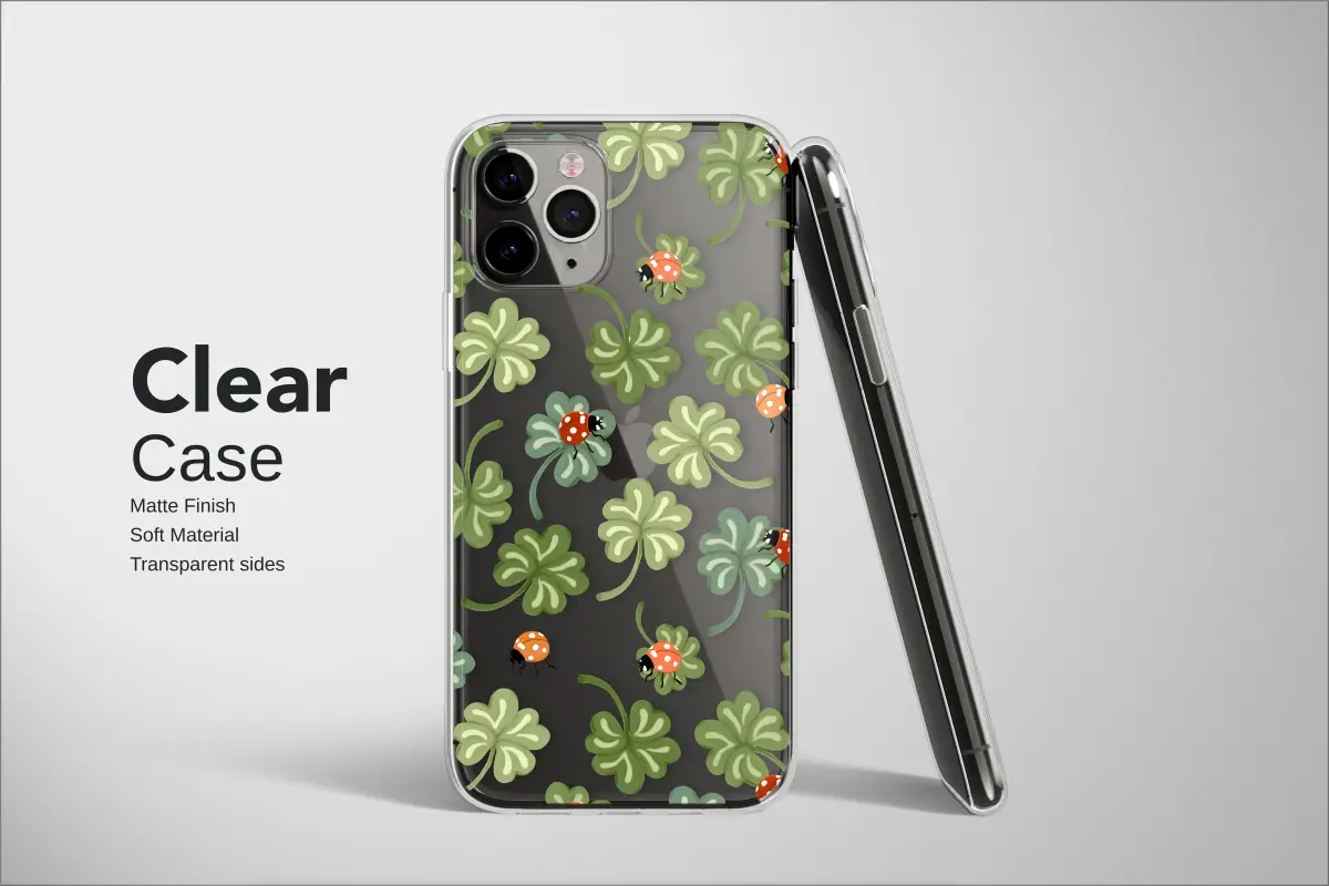 Bring a touch of luck wherever you go with this charming ladybug and four-leaf clover design. This whimsical pattern features illustrated green shamrocks and bright red ladybugs scattered across a clean background, creating a playful and cheerful aesthetic perfect for nature lovers or anyone celebrating St. Patrick's Day.