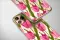 Embrace a unique blend of nature and digital art with this stunning design. Vibrant pink tulips and lush green leaves pop against a colorful, abstract glitch-art background. The contrast between the classic floral illustration and the modern, pixelated pattern creates a truly artistic and eye-catching aesthetic, perfect for expressing a bold and creative style.
