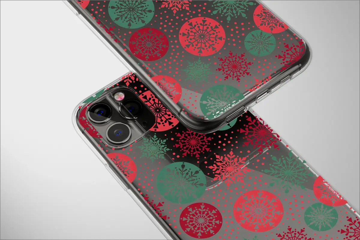 Embrace the holiday spirit with a unique, modern twist. This festive design showcases a vibrant pattern of intricate red and green snowflakes scattered across a dynamic abstract background. The contrast between the classic winter symbols and the colorful, digital glitch-style backdrop creates a contemporary and eye-catching look perfect for the season.