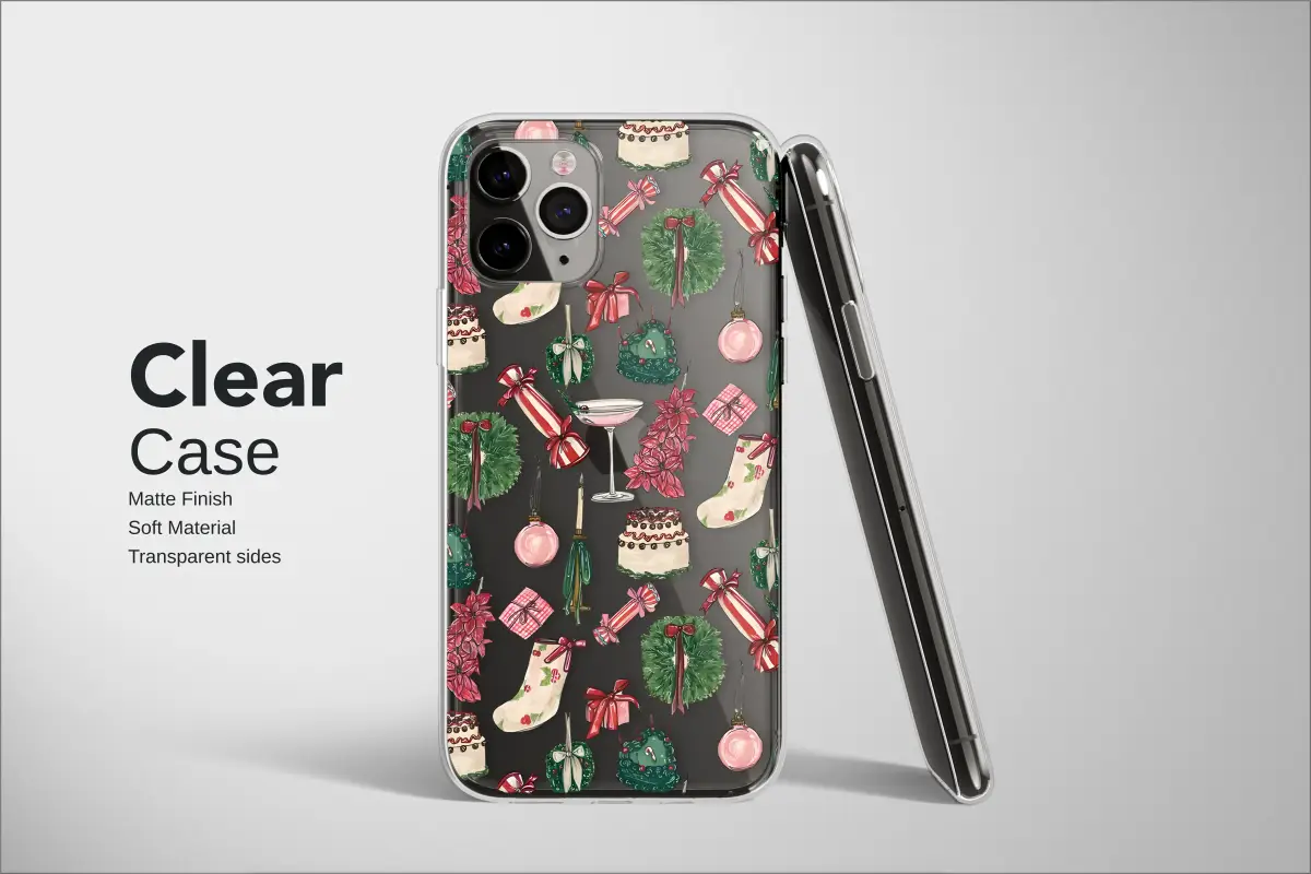 Embrace the holiday season with a unique twist. This festive design features a vibrant collage of classic Christmas illustrations, including cozy stockings, decorative wreaths, sweet cakes, and celebratory cocktails. Set against a striking digital glitch art background, the pattern merges nostalgic holiday charm with a modern, edgy aesthetic. The hand-drawn quality of the festive elements provides a warm contrast to the cool, pixelated backdrop, creating a truly one-of-a-kind look.
