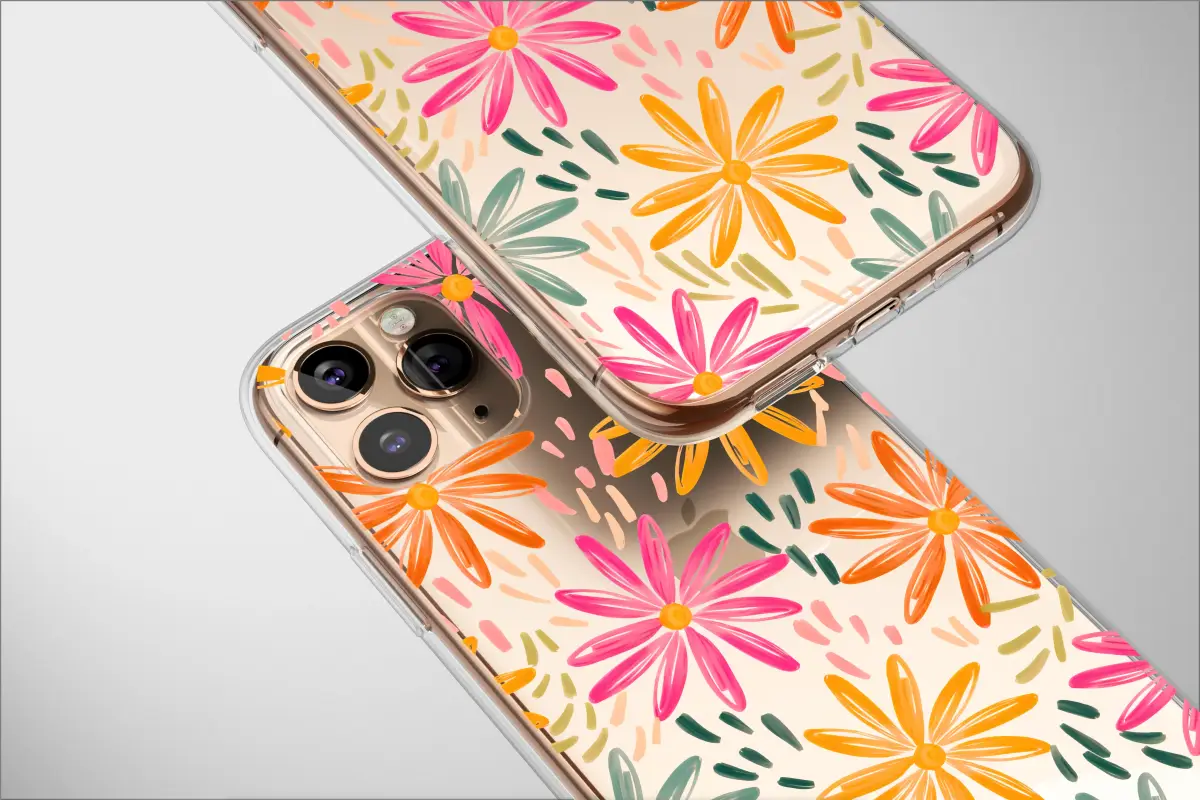 Embrace a burst of digital nature with this unique floral design. Featuring brightly colored daisies in vibrant shades of pink, orange, and teal, this pattern stands out against a playful, pixelated background. The painterly style and abstract glitch effect create a modern, artistic aesthetic that is both cheerful and chic, perfect for showcasing a love for bold botanicals and contemporary art.