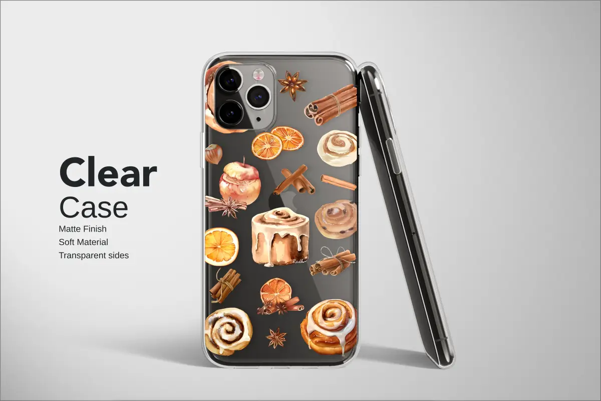 Wrap your device in the warm, cozy feeling of a bakery with this delightful watercolor design. This charming pattern features freshly-baked cinnamon rolls drizzled with icing, alongside classic autumn spices like cinnamon sticks, star anise, and dried orange slices. The artistic, hand-painted style brings a touch of rustic comfort and sweet nostalgia, perfect for anyone who loves the comforting scents and treats of the fall and winter seasons.
