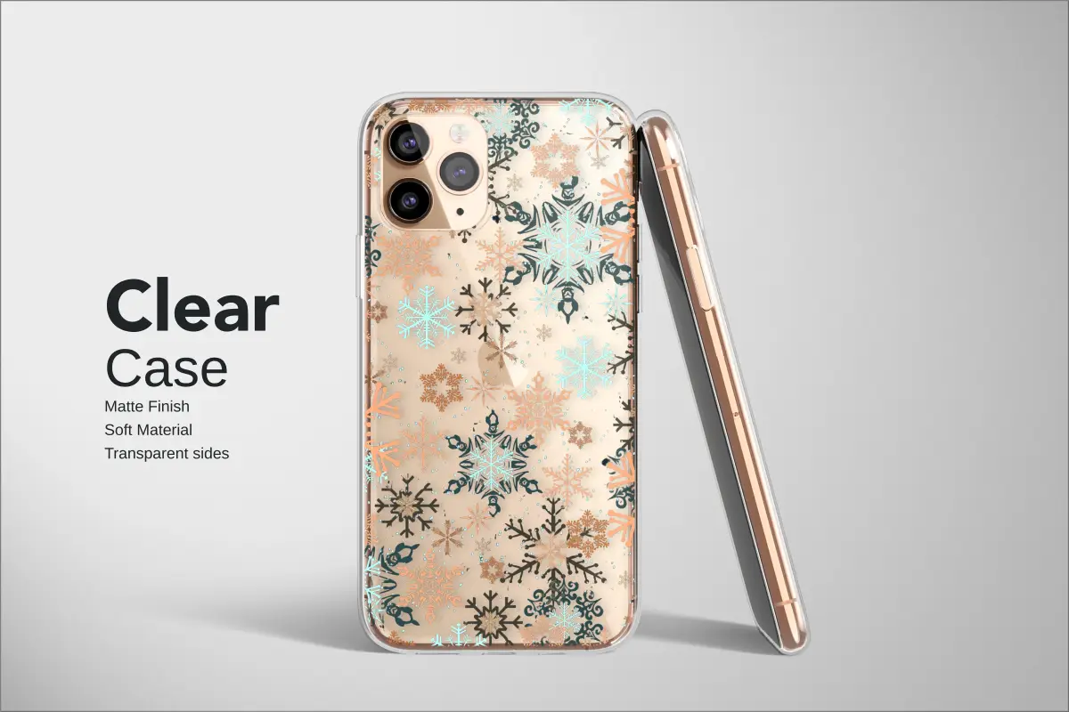 Embrace the serene magic of a starlit winter evening with this captivating and artistic design. Picture a silent, mesmerizing flurry of intricate snowflakes gently drifting through the crisp night air, each one a unique crystalline masterpiece frozen in time. Set against a deep, velvety black canvas that evokes the infinite cosmos, this mesmerizing pattern comes alive with a stunning and unconventional palette. Glimmering flakes of icy aquamarine catch the light like distant stars, while others glow with the warm, metallic sheen of polished copper, reminiscent of a cozy fireside. Deep, shadowy teal silhouettes add a layer of mysterious depth, creating a sophisticated visual dance. This isn't just a pattern; it's an emotion—the peaceful hush of the first snowfall, the comforting warmth on a cold night, the wonder of looking up at a clear winter sky. It’s the perfect way to carry the enchanting beauty of the holiday season with you, transforming your most-used accessory into a statement piece of wearable art. An ideal and thoughtful gift for anyone who cherishes the unique charm of winter or appreciates dark, moody aesthetics with a festive twist, this design offers a daily touch of seasonal splendor and timeless, artistic elegance.