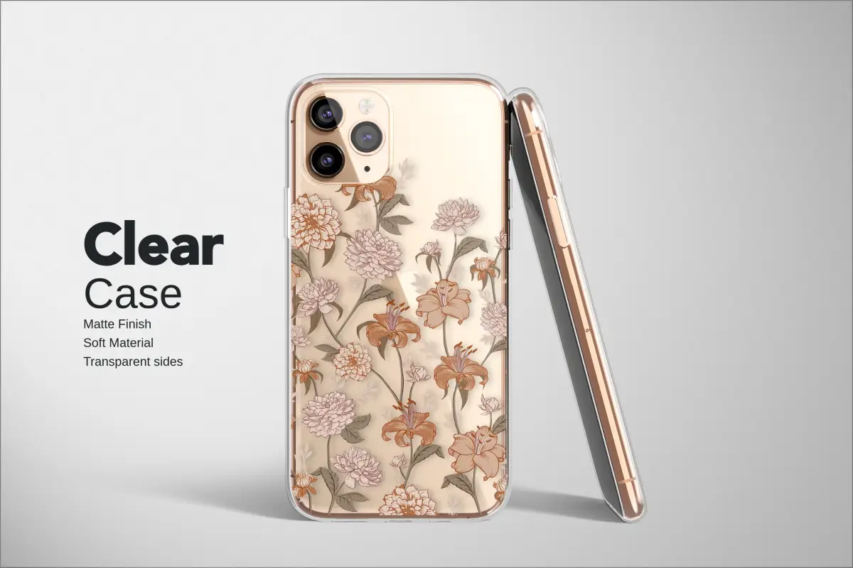 Wrap your daily companion in the romance of a forgotten garden with this enchanting botanical design. A delicate cascade of vintage-inspired florals, featuring lush chrysanthemums and elegant lilies, blooms in a dreamy palette of dusty rose, warm terracotta, and soft peach. Each petal and leaf is rendered in exquisite line art, reminiscent of antique botanical illustrations found in a cherished, leather-bound book. This aesthetic is perfect for the modern romantic with a cottagecore heart or a free spirit with a love for all things boho. Our unique transparent design allows the floral pattern to float beautifully over your device, letting its original color peek through for a truly personalized look. It’s more than just a pretty accessory; it's a piece of wearable art that brings a touch of sophisticated, earthy charm to your most essential tech. This elegant floral cover is a thoughtful gift for her, a perfect bridesmaid present, or simply a lovely treat to elevate your own everyday style. Protect your connection to the world with a piece of art that expresses your unique taste, a must-have for your iPhone, Samsung, or Google Pixel.