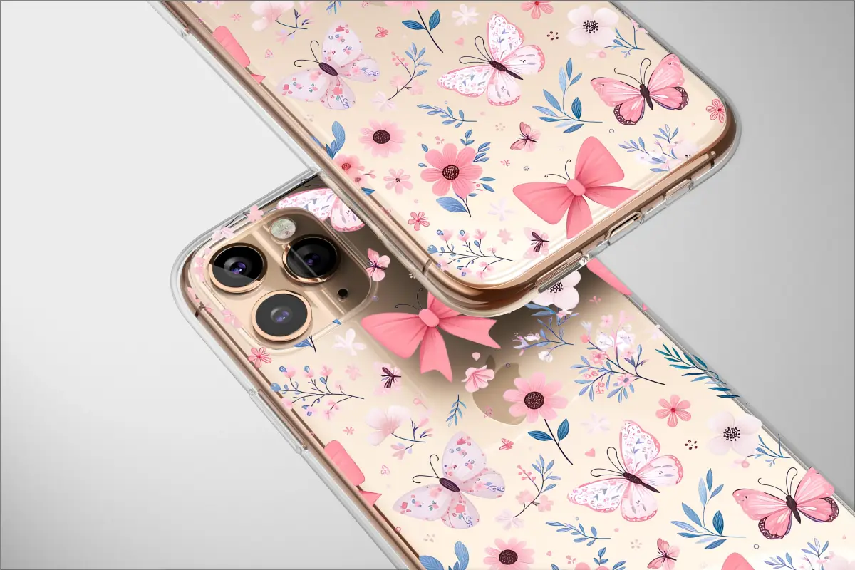 Step into a secret midnight garden where magic flutters on delicate wings. This enchanting design captures a vibrant dreamscape where soft pink butterflies dance among a sea of blossoming florals and charming coquette bows, all set against a dramatic, contrasting black canvas. Imagine tracing the paths of the fluttering butterflies as they visit sweet pink daisies and delicate blossoms, their wings painted in soft, watercolor hues. Sprinkled throughout this whimsical scene are perfectly tied pink bows, adding a touch of playful femininity and coquette charm. The cool, calming tones of the blue-green botanical leaves provide a beautiful contrast, making the pinks pop with life and energy. This pattern feels like a page from a modern fairytale, blending timeless cottagecore charm with a trendy, romantic aesthetic that is both sweet and sophisticated. It's more than just a beautiful design; it’s an accessory that tells a story of enchantment and delicate beauty. Wrap your most-used item in this captivating floral meadow and carry a piece of wearable art that expresses your unique and graceful style. It makes an unforgettable gift for the dreamer, the romantic, or anyone looking to add a touch of nature-inspired magic to their daily life.