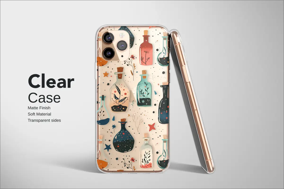Immerse yourself in a world of midnight magic with this enchanting apothecary design, a tapestry woven from stardust and earthly secrets. Picture an alchemist's hidden workshop, bathed in the soft glow of a distant nebula, where an array of cork-stoppered bottles hold the universe's most captivating elixirs. Each whimsical flacon is a miniature world, brimming with shimmering potions, captured dreams, and wild, mystical botanicals gathered under a knowing moon. Delicate herbs, tiny flowers, and cosmic blossoms float suspended within magical concoctions of deep teal, warm terracotta, and shadowy indigo, each one sparkling with the light of a tiny, captured constellation. This dark cottagecore illustration, imbued with a hand-drawn charm and a cozy, witchy aesthetic, invites you to carry a piece of the cosmos. It transforms your most essential accessory into a portal to a more magical realm, a daily reminder of the quiet power that stirs in the twilight hours. It’s a perfect gift for the modern witch, the stargazer, or anyone with a love for dark academia and mystical art. Let this unique, artistic piece be your personal talisman, whispering tales of enchanted nights and secret gardens, and making your everyday a little more extraordinary.