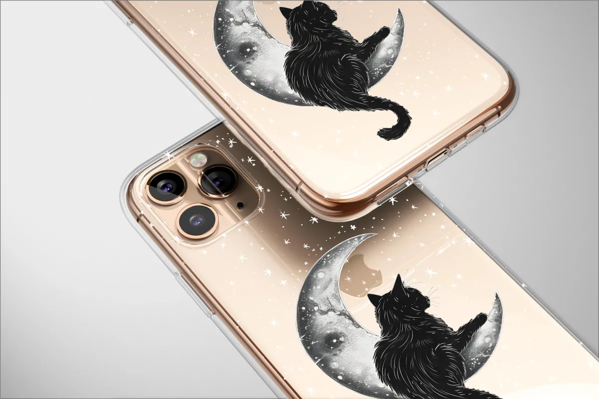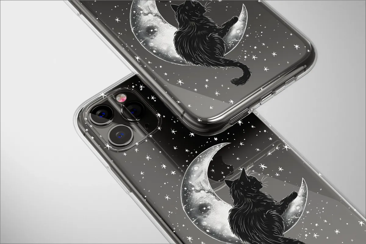 Embrace the celestial with this enchanting design featuring a sleek black feline perched serenely on a crescent moon amidst a shower of shimmering stars. This mystical artwork, perfect for adding a touch of magic to your everyday, is printed using vibrant, high-quality inks that ensure lasting color and detail. The detailed illustration captures the ethereal beauty of a moonlit night, making it an ideal gift for cat lovers, astronomy enthusiasts, or anyone who appreciates unique and artistic designs. The soft texture and durable print provide optimal protection while showcasing this captivating image. Express your individuality with this captivating piece; a beautiful blend of feline charm and cosmic wonder. This design stands out from the crowd, offering a captivating aesthetic that perfectly complements any style. Transform your personal item into a celestial masterpiece, reflecting your unique personality and love for all things mystical and magical. Add a touch of midnight magic to your life – order yours today!