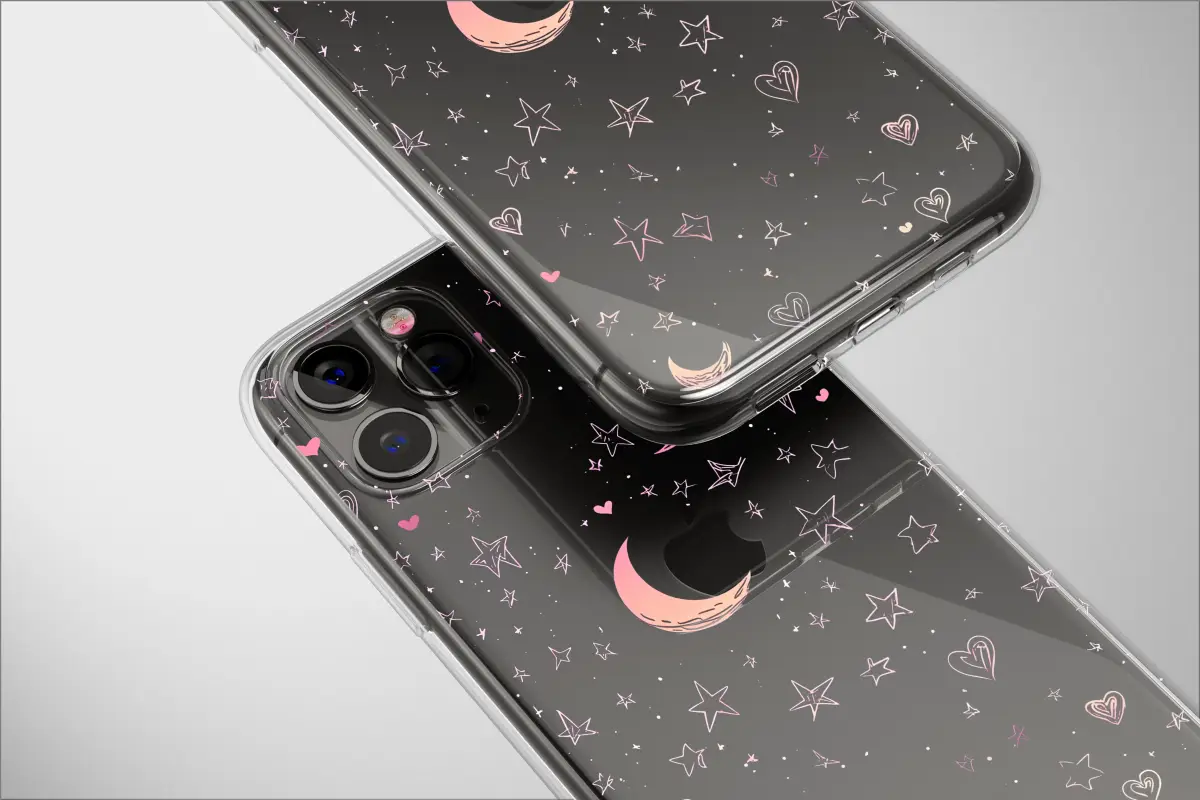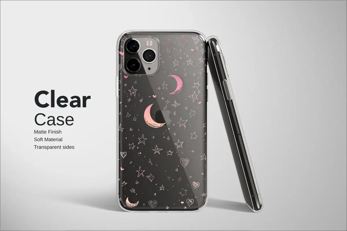 Lose yourself in a celestial dreamscape, where the magic of a starry night is captured in a whimsical, hand-drawn doodle. This enchanting artwork features a cascade of glowing pink stars and soft crescent moons tumbling across a deep, inky black canvas, like secrets whispered from the cosmos. Each star, heart, and moon is sketched with a charming, carefree energy, reminiscent of a treasured notebook from a dreamy era. The design blends a nostalgic Y2K aesthetic with a touch of modern pastel goth charm, creating a unique visual story that's both sweet and edgy. Shimmering specks of stardust and tiny, heartfelt scribbles are scattered throughout, adding depth and a sense of infinite wonder to the cosmic pattern. This isn't just a design; it's a personal galaxy you can hold in your hands. It’s the perfect way to express your love for all things celestial and artistic, transforming an everyday essential into a statement piece. Let this captivating illustration wrap your favorite item in a blanket of starlight, a constant and beautiful reminder to always look up and dream.
