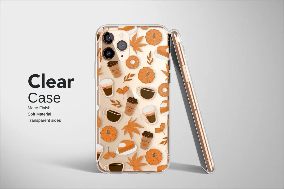 Embrace the coziest season of all with this enchanting autumn-inspired design. Our exclusive pattern captures the heartwarming essence of a perfect fall day, scattered across a classic black canvas. Imagine crisp, golden leaves tumbling alongside plump, cheerful pumpkins and delicious slices of pumpkin pie topped with a dollop of cream. Steaming mugs of latte and to-go coffee cups promise warmth and comfort, while sweet frosted donuts add a touch of playful delight. This illustrated celebration of all things autumn is perfect for anyone who loves the scent of cinnamon, the comfort of a warm drink, and the magic of sweater weather. The rich palette of burnt orange, warm browns, and creamy whites creates a visually stunning and comforting aesthetic, making it a beautiful accessory for your everyday carry. It's a charming way to celebrate the harvest season, from the first cool breeze of September to the family gatherings of Thanksgiving. Let this delightful artwork bring a touch of seasonal joy to your daily routine or give the perfect thoughtful gift to the fall enthusiast in your life. Carry the spirit of pumpkin spice and everything nice with you, wherever you go.