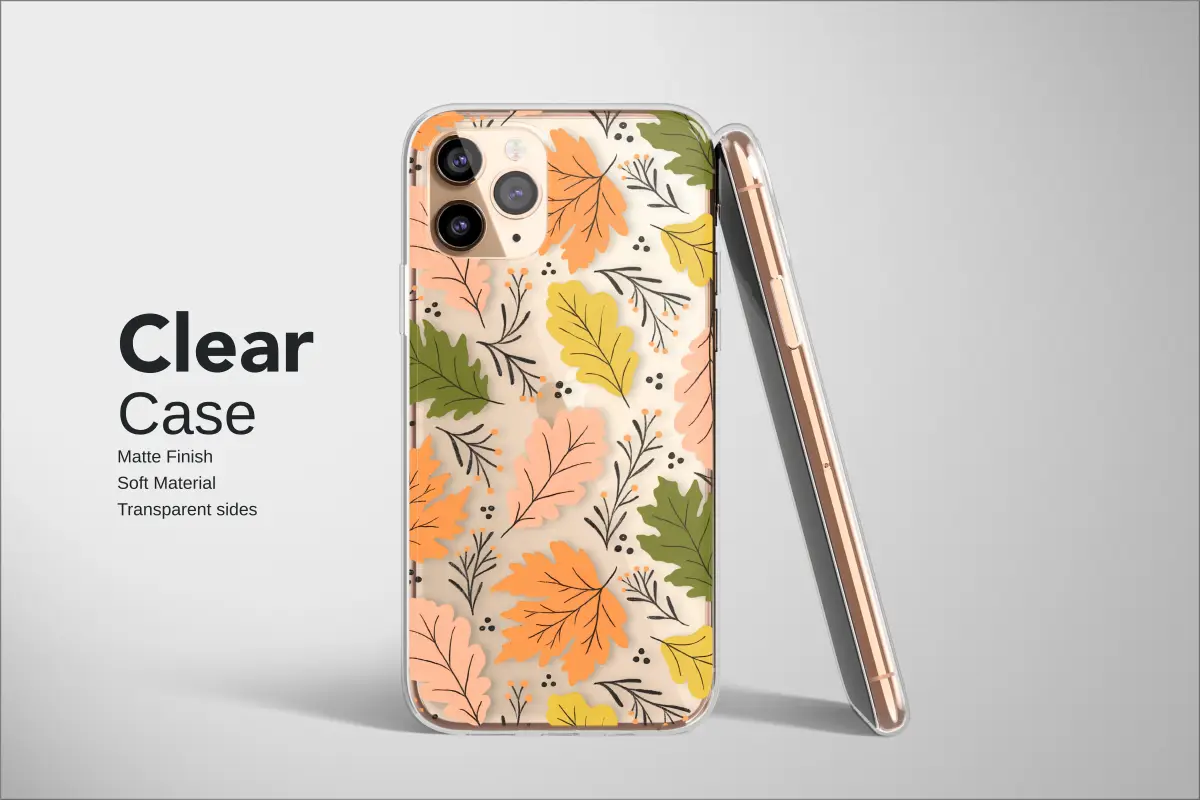 Embrace the cozy magic of autumn with this enchanting botanical design, a perfect tribute to your favorite season. Imagine a crisp walk through a midnight forest, where colorful leaves drift gently against a dark, starlit sky. This pattern captures that very feeling, featuring a beautiful cascade of stylized oak and maple leaves in a warm, rustic palette of burnt orange, golden yellow, soft peach, and deep olive green. Delicate, hand-drawn branches laden with tiny, cheerful berries weave throughout the foliage, adding a touch of whimsical woodland charm and texture. The rich, black background makes the autumnal colors pop, creating a striking contrast that is both elegant and earthy. This design is for the soul that craves the comfort of a chunky knit sweater, the scent of pumpkin spice, and the simple beauty of nature's artistry. It’s the perfect way to carry a piece of the harvest season with you, adding a touch of personalized, artistic flair to your most-used accessory. A thoughtful gift for any nature lover, this design celebrates fall's fleeting, beautiful moments.