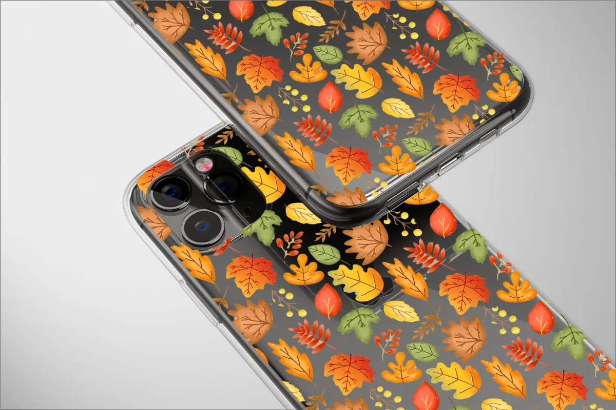Embrace the enchanting spirit of the coziest season with this stunning autumnal design. Imagine a leisurely stroll through a sun-dappled forest on a crisp fall day, the air filled with the scent of earth and cider. This artwork captures that very feeling, featuring a vibrant cascade of hand-painted watercolor leaves dancing against a dramatic midnight black backdrop, making each color pop with life. Each leaf is a tiny masterpiece, from the mighty oak to the delicate maple, rendered in rich, warm hues of fiery crimson, burnt orange, golden amber, and a touch of lingering forest green. The delicate details and soft, blended colors evoke a sense of nostalgic warmth and rustic charm, transforming your favorite accessory into a wearable piece of art. It’s a celebration of nature's final, brilliant display, a perfect blend of cottagecore aesthetic and modern elegance. Let this beautiful foliage pattern infuse your everyday routine with the magic of autumn, making it the perfect personal treat or a thoughtful gift for the fall lover in your life. Carry a piece of the harvest season's beauty with you, a constant reminder of cozy sweaters, warm drinks, and the gentle rustle of falling leaves underfoot.