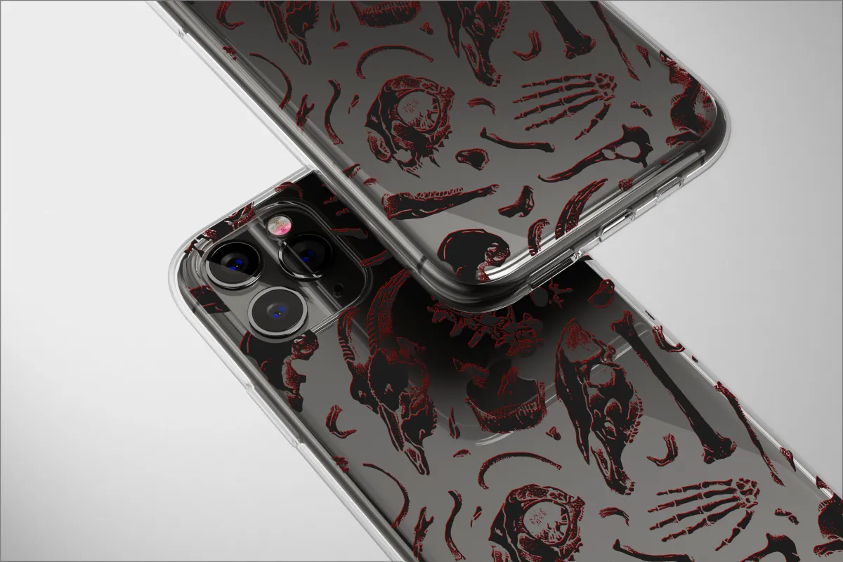 Embrace the beautifully macabre with this striking anatomical pattern, a design that speaks to the soul that finds beauty in the shadows. A dramatic cascade of intricately detailed bones and skulls, rendered in stark, shadowy black, is scattered across a deep, blood-red canvas, creating a powerful visual contrast. From the noble horns of a ram's skull to the delicate phalanges of a human hand and the stark reality of a spinal column, each element tells a silent, ancient story. This mesmerizing ossuary is both haunting and artistic, capturing the raw elegance found in the very framework of life. It’s a perfect piece for anyone who walks on the darker side of style—the metalhead, the punk enthusiast, the modern witch, or the dark academic. Let this design transform your essential tech into a bold statement piece that’s impossible to ignore. More than just an accessory, it's an expression of an alternative spirit, a wearable piece of gothic art that will surely become a conversation starter. It makes an unforgettable gift for a friend with a taste for the unconventional or a daring treat for yourself to celebrate your unique style.