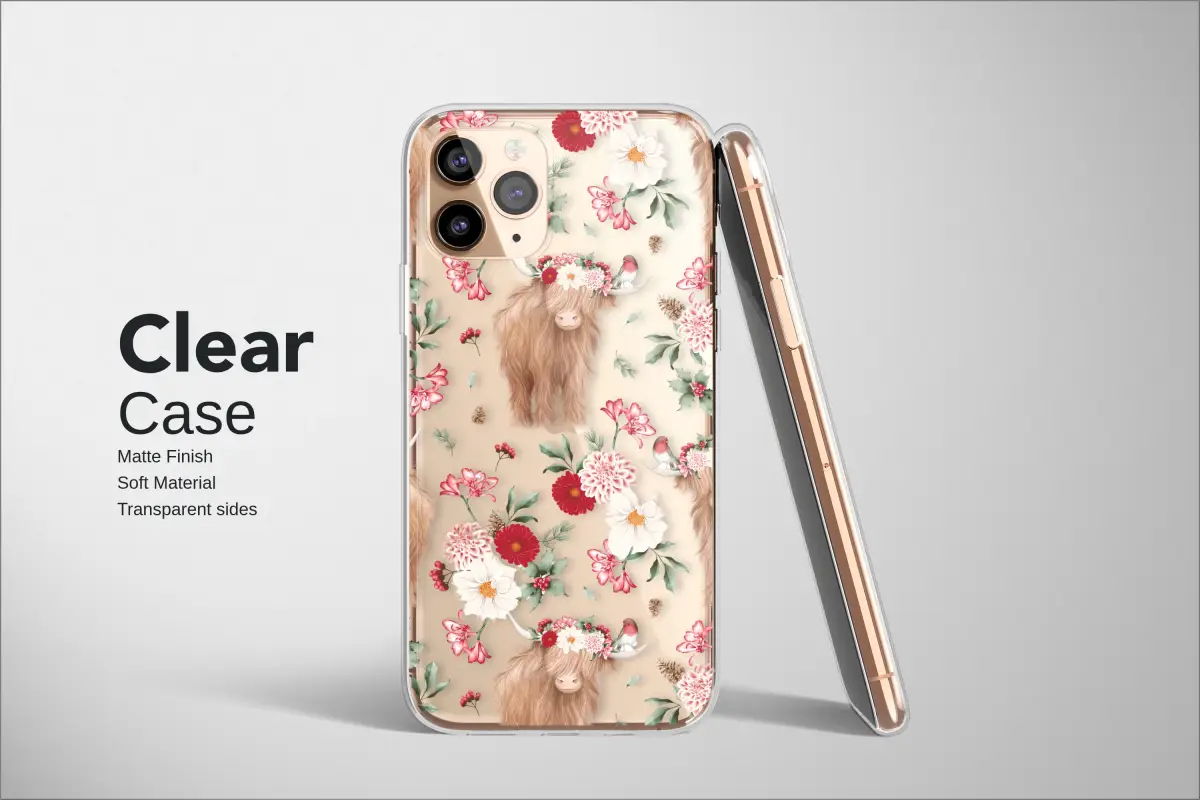 Embrace a touch of untamed whimsy and carry a piece of the serene countryside with you every day. This enchanting design features a charming, fluffy Highland cow, peeking sweetly from beneath its fringe, crowned with a delicate garland of wildflowers. It’s a beautiful blend of rustic farmhouse charm and delicate boho spirit, perfect for the modern nature lover. The adorable heilan coo is nestled within a lush tapestry of watercolor florals, where vibrant crimson and soft pink dahlias mingle with crisp white blossoms, festive red berries, and sprigs of evergreen. This isn't just an accessory; it's wearable art that wraps your most essential tech in personality and style. Whether you prefer the design against a crystal-clear backdrop that lets your device's color peek through, or a deep, moody charcoal that makes the botanical elements pop, this piece transforms the mundane into something magical. It’s the perfect aesthetic statement for anyone who adores the cottagecore trend, western vibes, or simply needs a daily dose of cuteness. This beautiful and protective adornment makes an unforgettable gift for her, a friend, or a delightful treat for yourself, adding a whisper of pastoral beauty to every call and text.