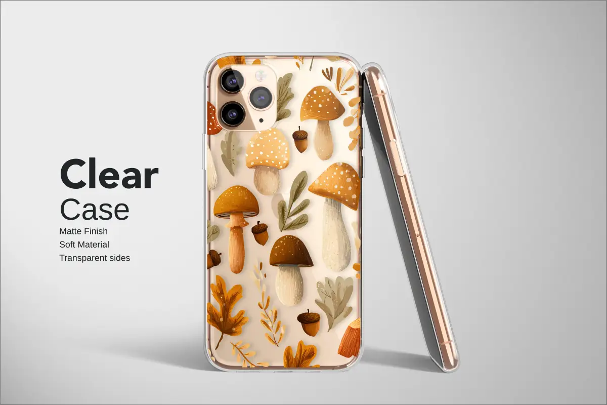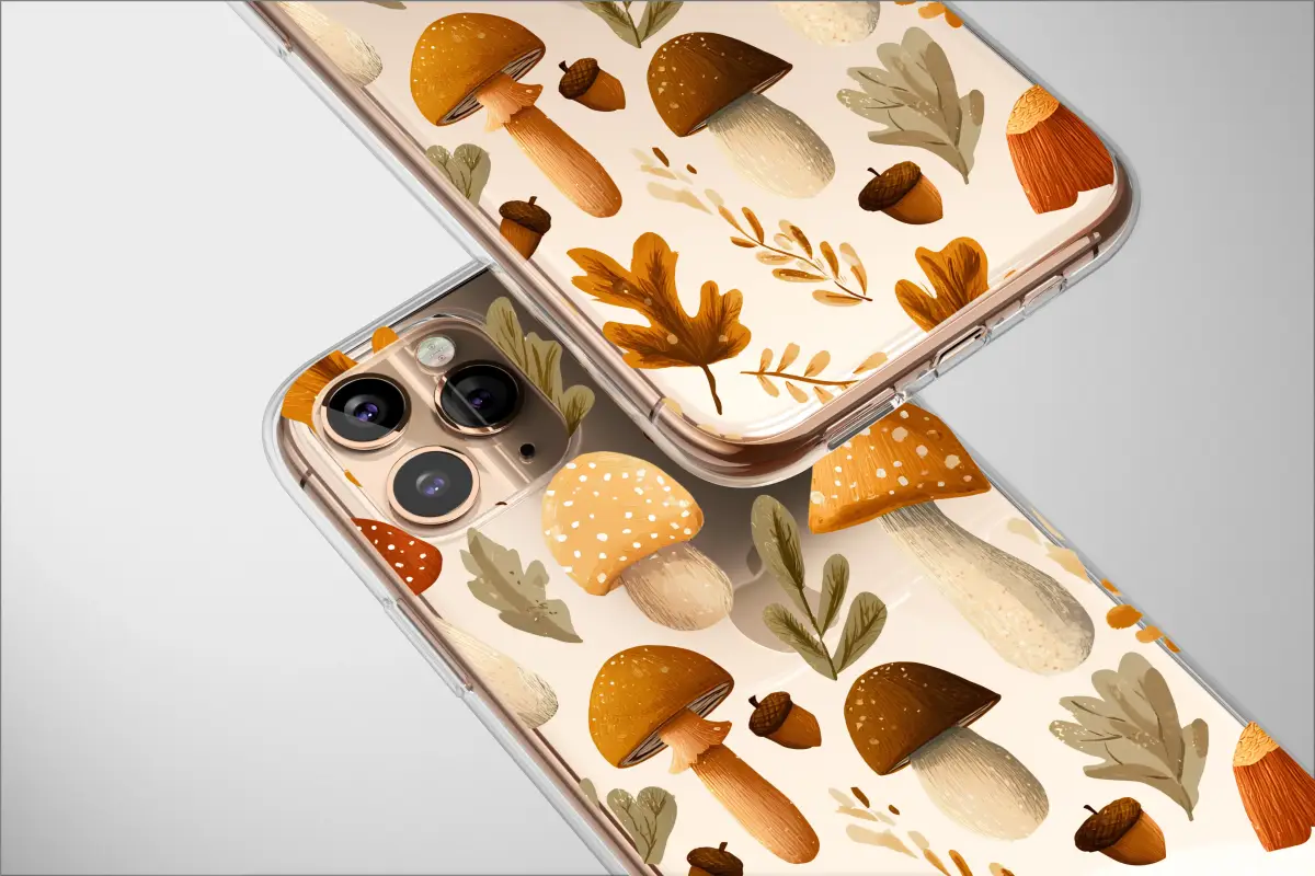 Step into a whimsical woodland dream with this enchanting autumn-inspired design. Imagine a quiet walk through a sun-dappled forest floor, where the air is crisp and smells of damp earth and fallen leaves. This pattern captures that magical moment, featuring a delightful array of hand-illustrated mushrooms and toadstools in rich, earthy tones of burnt sienna, creamy beige, and deep ochre. Scattered amongst them are delicate acorns, promising the start of something new, and crisp autumn leaves that seem to dance against the deep, dark background. It's a celebration of the cozy, foraging spirit of fall, perfect for anyone who feels at home among the trees. Let this beautiful artwork wrap your most-used accessory in a layer of rustic charm and cottagecore warmth. Carry the serene, mystical energy of the forest with you, turning an everyday object into a conversation piece and a personal talisman of your love for nature's quiet beauty. It’s more than just a pattern; it’s a portal to your happy place, a little piece of harvest magic to brighten your day.