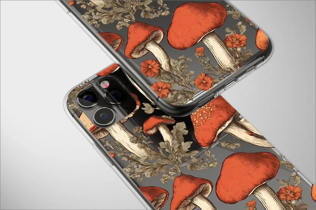 Wander deep into a secret, enchanted glade where the veil between worlds is thin. This captivating design is a love letter to the forest floor, a place of quiet magic and earthy wonder. Vibrant, scarlet-capped mushrooms and whimsical toadstools push through a tapestry of muted, sage-green foliage, their forms captured with the detailed precision of a vintage botanical illustration. Set against a dramatic, dark background, the rich, warm colors pop, drawing the eye to every delicate gill and speckled cap. This isn't just a pattern; it's a story whispered on the breeze, a scene straight from a beloved fairytale or a hidden grimoire. It perfectly captures the essence of cottagecore charm, the intellectual curiosity of dark academia, and the mischievous spirit of goblincore. Adorn your most cherished daily accessory with this piece of woodland art and carry a constant reminder of nature's enchanting power. Let it be your personal portal to a world of mossy logs, dappled sunlight, and the silent, steady growth of the forest. It’s the ideal unique gift for the mushroom forager, the nature-loving soul, or anyone who finds their magic in the wild, untamed corners of the earth, transforming the mundane into something truly mystical.