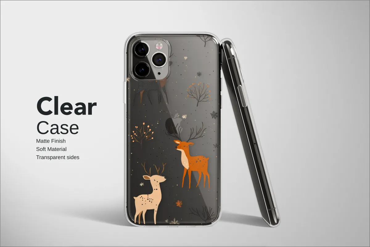 Step into a silent, enchanted forest where the air is crisp and magic lingers among the trees. This captivating design captures the soul of a mystical woodland under a dark, star-dusted sky. Majestic stags, rendered in earthy tones of twilight black, warm autumn rust, and gentle cream, wander gracefully through a delicate flurry of falling snowflakes and lingering leaves. Each creature tells a story, a quiet moment frozen in time against the deep, peaceful night. The intricate details of the scattered foliage and the gentle presence of the deer evoke a sense of calm and wonder, bringing the serene beauty of nature's solitude to your fingertips. It’s more than just an accessory; it’s a portable piece of art for the nature lover, the dreamer, and anyone who finds comfort in the quiet magic of the woods. Carry a piece of this tranquil winter scene with you and let its rustic, cozy cabin charm infuse your everyday moments with a touch of enchantment and peace.
