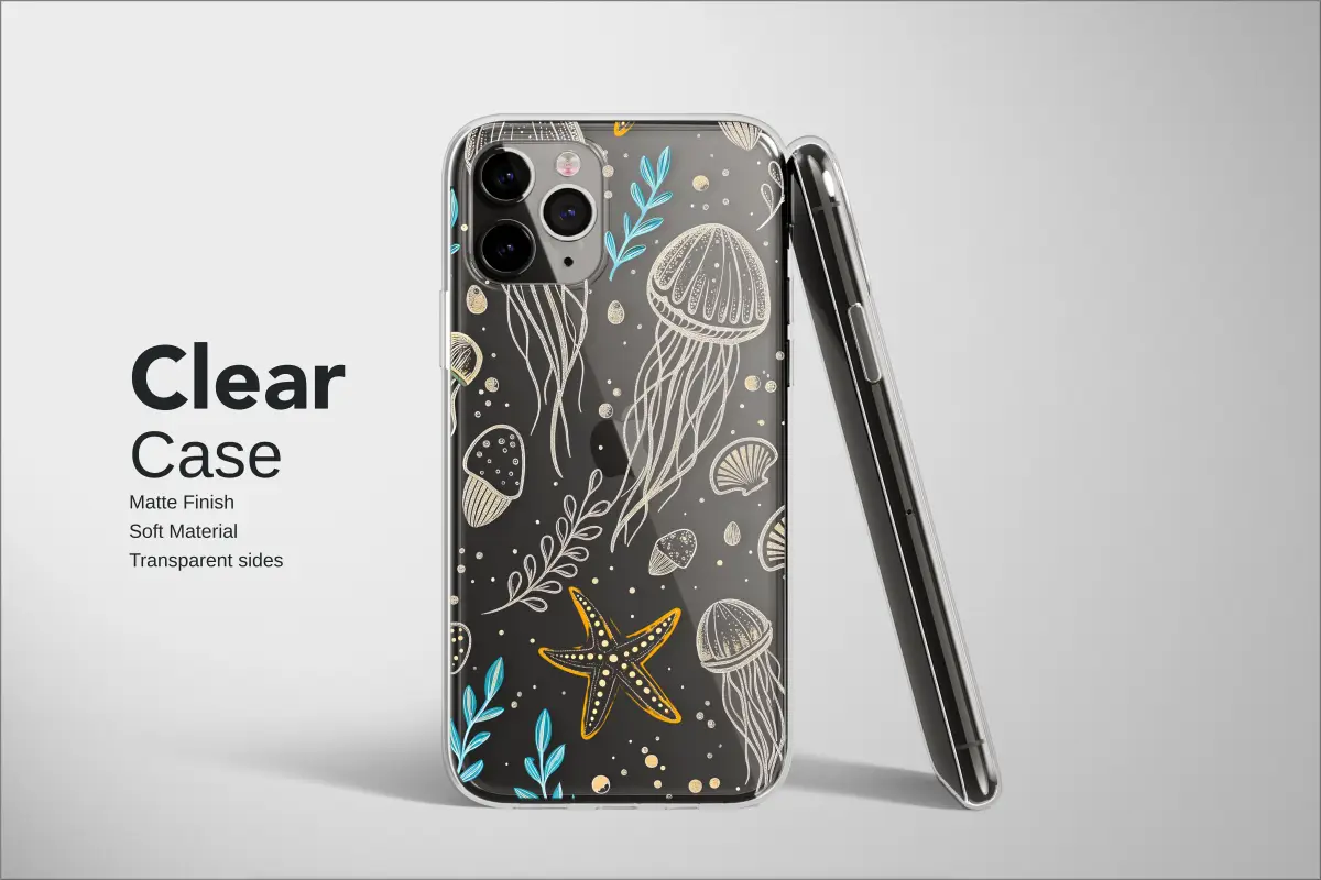 Dive into the enchanting abyss of a midnight ocean with this mesmerizing and intricate design. Imagine ethereal jellyfish, glowing with a soft, celestial light, as they drift silently through the inky darkness. Their delicate, trailing tentacles are rendered with stunning detail, weaving a dance of light amidst the deep. Scattered around them are treasures of the sea floor: shimmering seashells, a single golden starfish offering a warm contrast, and wisps of turquoise seaweed that add a vibrant pop of color to the mysterious scene. This captivating artwork is more than just a pattern; it's a portal to a serene, underwater dreamscape, designed to transform your most-used essential into a piece of wearable wonder. The unique, almost embroidered-like texture brings each sea creature to life, creating a tangible sense of magic and tranquility. It's the perfect expression of personal style for the marine biologist at heart, the ocean lover, the stargazer, and the dreamer who finds profound beauty in the deep. Let this elegant and whimsical pattern be your daily reminder of the serene magic hidden beneath the waves. It's an unforgettable gift for a loved one or a stunning treat for yourself, a piece of the ocean's soul to carry wherever you go.