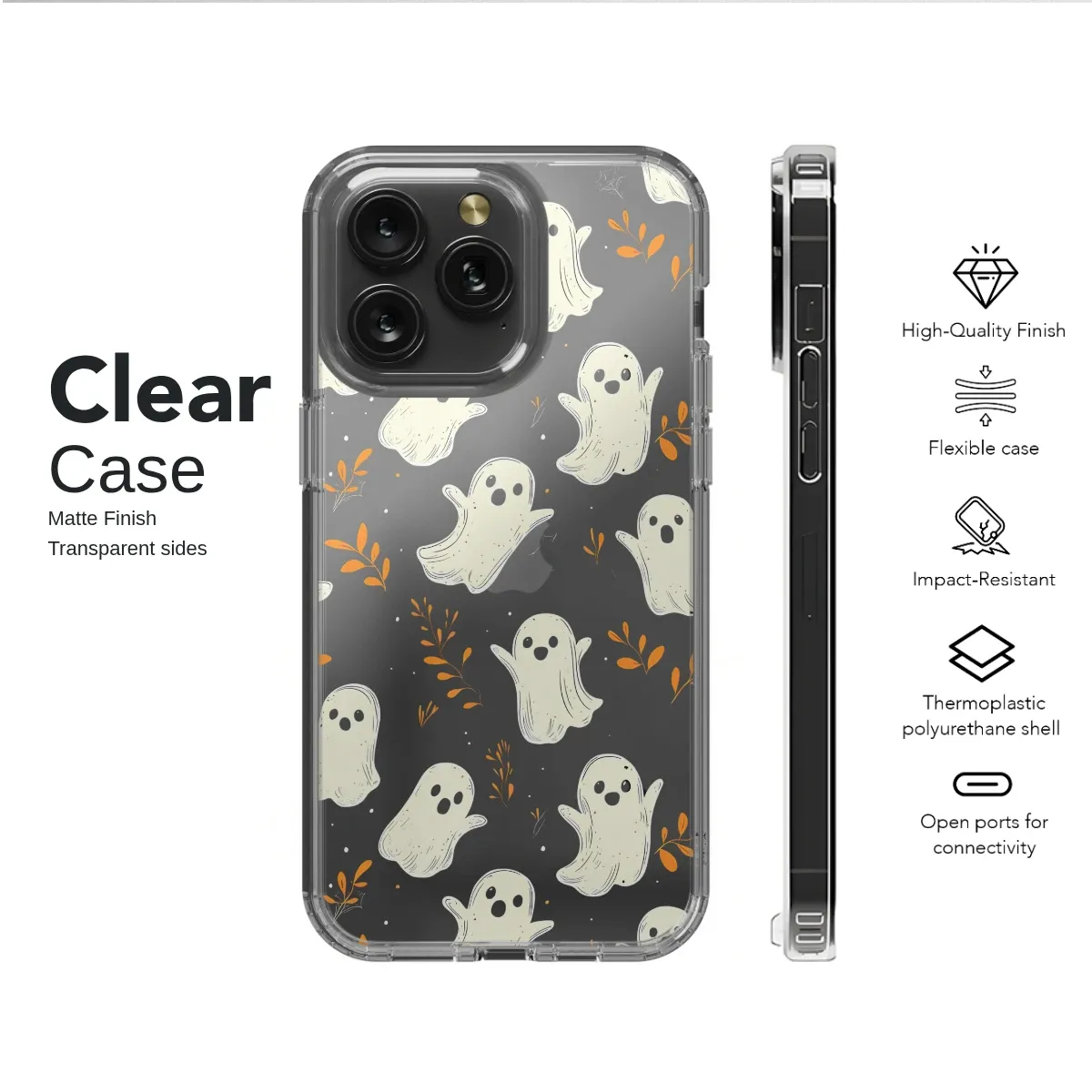 HMD Pulse Pro Clear Friendly Floating Ghosts Autumn Pattern Phone Case - Image 1