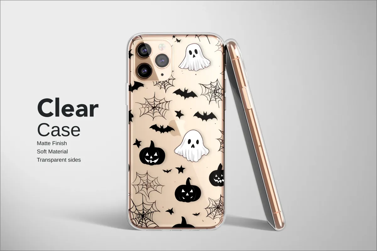 Embrace the enchanting chill of the spooky season with a design that's more sweet than scary. Dive into a midnight world where friendly little ghosts drift playfully through the inky darkness, their cheerful 'boos' echoing silently among grinning jack-o'-lanterns. Each pumpkin's mischievous smile glows softly from the shadows, creating a delightful All Hallows' Eve scene. Look closer and discover a world of subtle detail: deep crimson spiderwebs are intricately woven between the silhouettes of tiny bats taking flight against the blackest night. This artwork captures the magical, cozy feeling of crisp autumn evenings and the nostalgic joy of Halloween. It's a perfect blend of cute kawaii charm and a touch of gothic elegance, making it an ideal accessory to celebrate your love for all things fall. Carry this whimsical ghost party with you, letting it add a pop of adorable spookiness to your daily aesthetic. Perfect for anyone who adores the fall season, witchy vibes, or dark academia with a playful twist, this charming ghostly gathering is a wonderful way to showcase your love for the most magical time of the year. Let these little spirits accompany you on all your adventures, bringing a smile to your face every day.