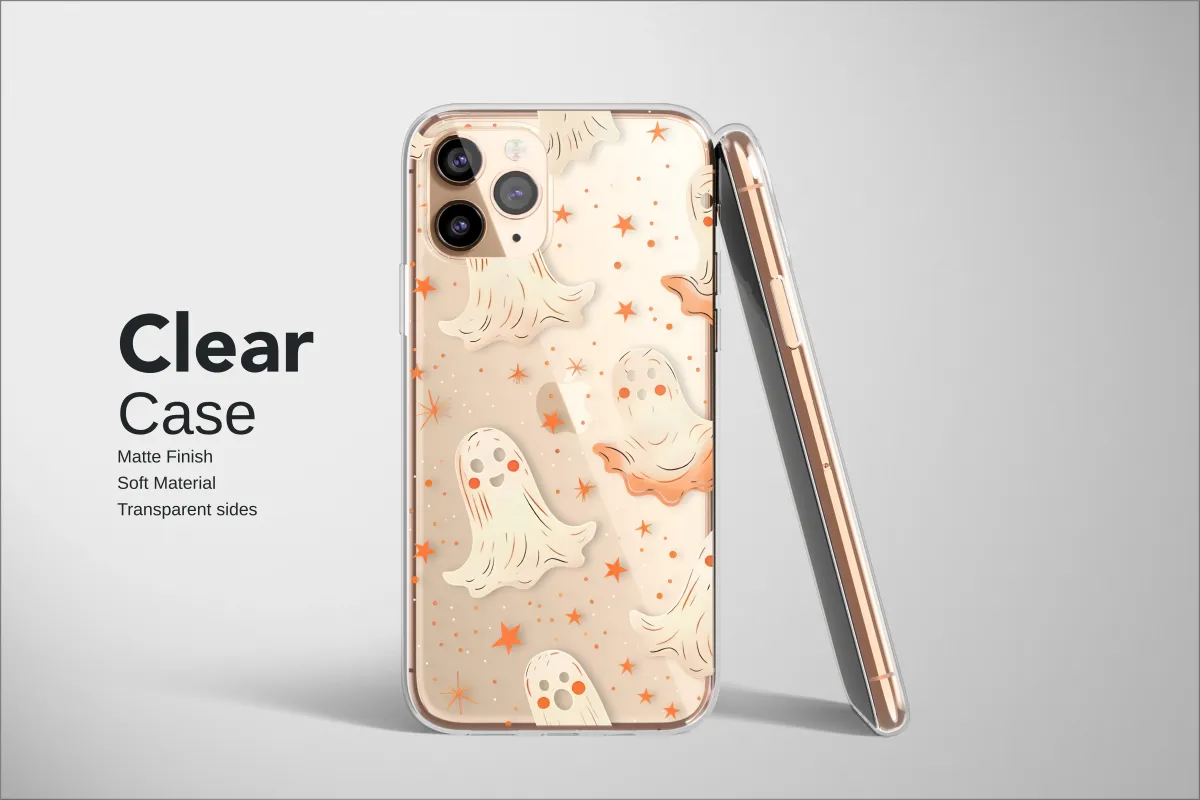 Embrace the magic of the spooky season all year round with a design that's more sweet than scary. Let your personal style shine with this enchanting pattern, where a delightful parade of rosy-cheeked, friendly ghosts float and dance across a deep, pixelated night sky. Each little phantom, with its charmingly simple expression and warm glow, brings a sense of joyful whimsy to the darkness. They glide among a constellation of twinkling orange stars and retro-inspired details, creating a scene reminiscent of a classic, cozy arcade game from a cherished memory. This unique artwork captures the heart of Halloween nostalgia, blending a cute kawaii aesthetic with a touch of vintage charm that feels both fresh and familiar. It’s the perfect way to carry a little bit of autumn enchantment with you, adding a pop of personality and spooky-cute flair to your daily essentials. Let this celestial dance of friendly spirits protect your most-used possession, reminding you that there is magic to be found even in the darkest night. This design isn't just an accessory; it's a conversation starter, a sprinkle of everyday joy, and a perfect gift for anyone who loves the cozier, more charming side of fall. Wrap your tech in a blanket of stars and friendly phantoms and let your spirit soar.