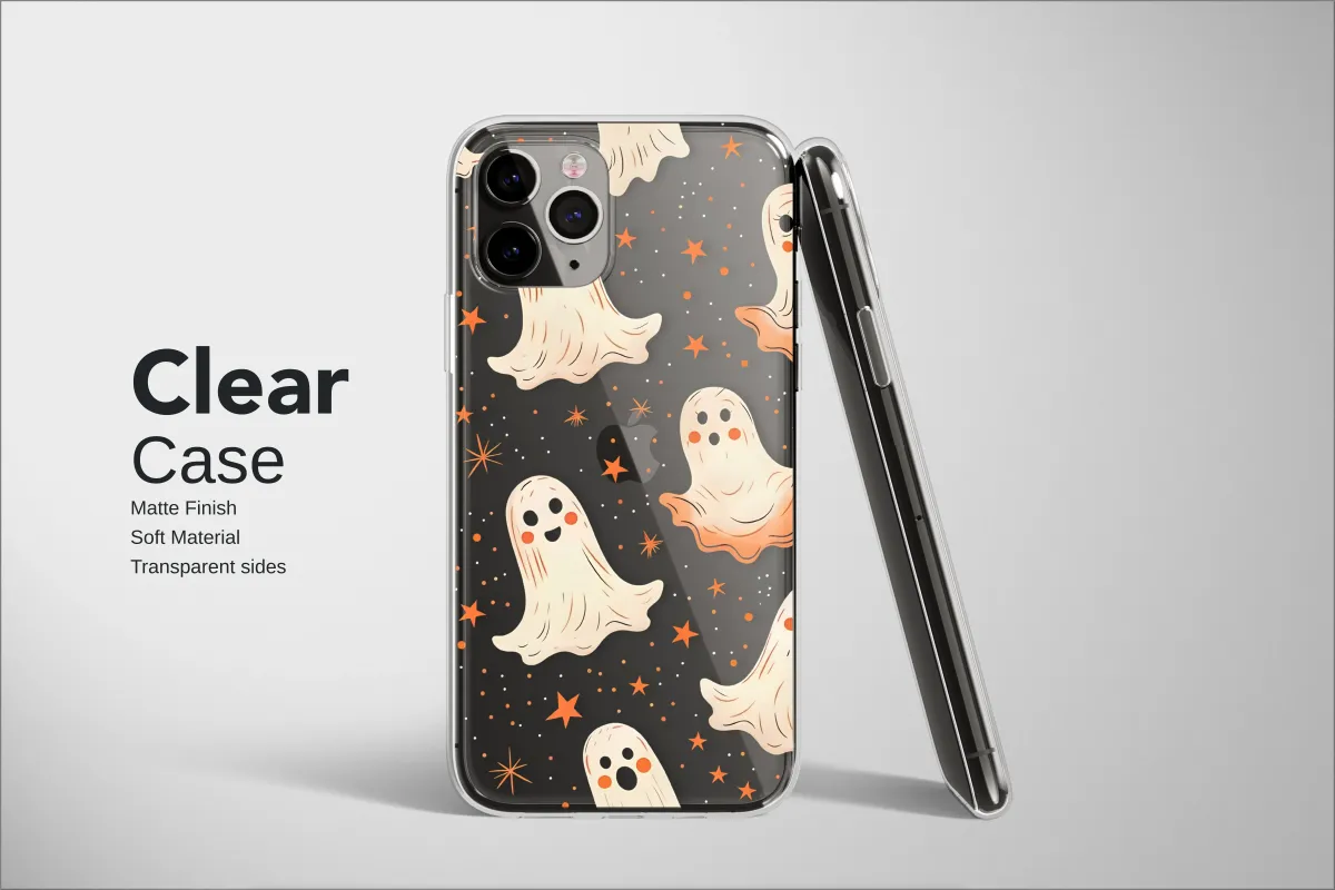 Embrace the magic of the spooky season all year round with a design that's more sweet than scary. Let your personal style shine with this enchanting pattern, where a delightful parade of rosy-cheeked, friendly ghosts float and dance across a deep, pixelated night sky. Each little phantom, with its charmingly simple expression and warm glow, brings a sense of joyful whimsy to the darkness. They glide among a constellation of twinkling orange stars and retro-inspired details, creating a scene reminiscent of a classic, cozy arcade game from a cherished memory. This unique artwork captures the heart of Halloween nostalgia, blending a cute kawaii aesthetic with a touch of vintage charm that feels both fresh and familiar. It’s the perfect way to carry a little bit of autumn enchantment with you, adding a pop of personality and spooky-cute flair to your daily essentials. Let this celestial dance of friendly spirits protect your most-used possession, reminding you that there is magic to be found even in the darkest night. This design isn't just an accessory; it's a conversation starter, a sprinkle of everyday joy, and a perfect gift for anyone who loves the cozier, more charming side of fall. Wrap your tech in a blanket of stars and friendly phantoms and let your spirit soar.