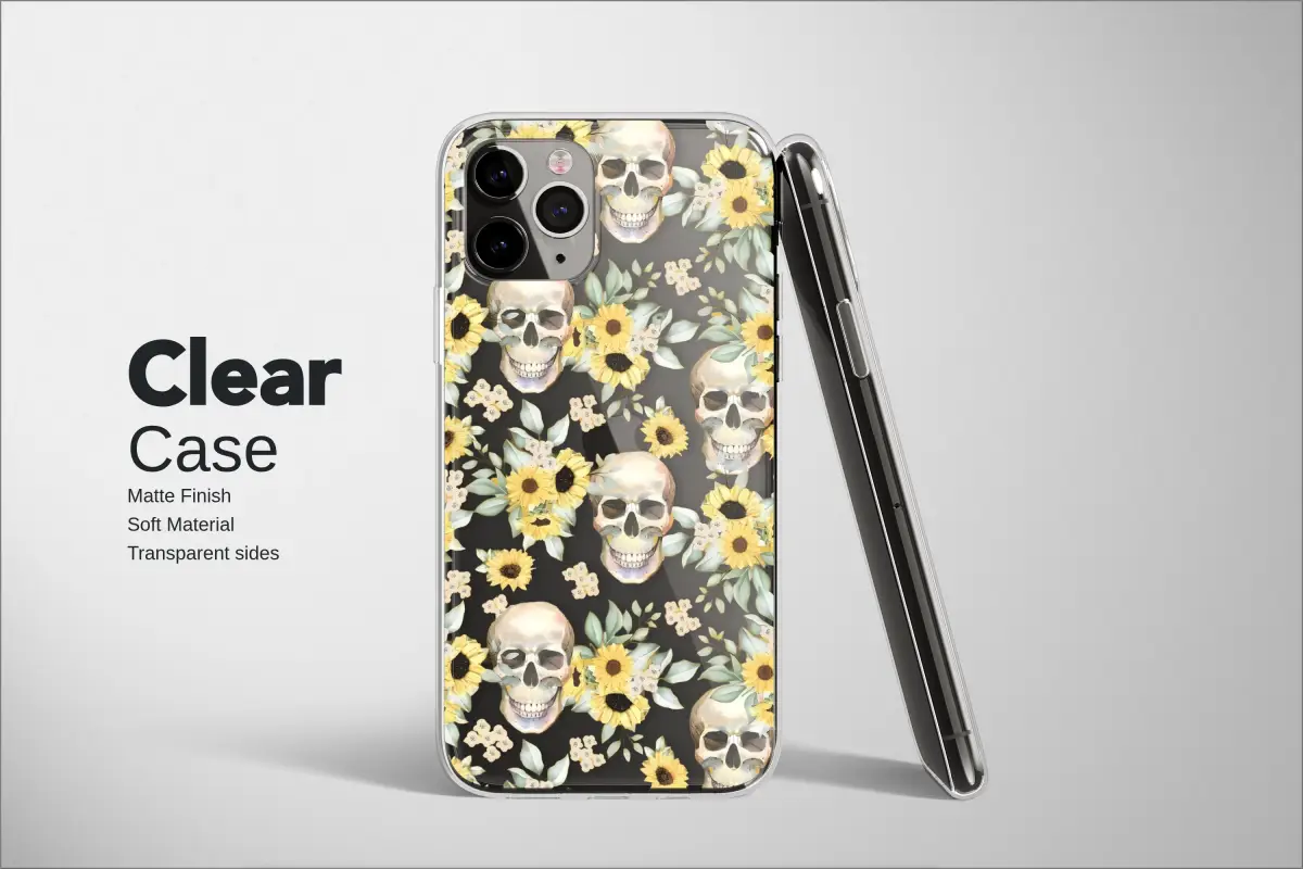 Embrace the beautiful paradox of your spirit with this captivating watercolor design, where life's vibrant bloom meets elegant mortality. Imagine sun-drenched golden sunflowers, bursting with cheerful energy, intricately woven with ethereal, hand-painted skulls in a mesmerizing pattern that feels both edgy and romantic. This unique botanical skull art is a celebration of contrasts, perfect for the soul who loves both spooky season and sunny fields, blending a romantic goth aesthetic with a touch of wildflower whimsy. This stunning artistic shell allows you to carry a piece of dark academia and cottagegoth magic with you every day, transforming your most essential tech into a statement of your unique personality. Choose your narrative: a dreamy, sun-kissed peach background that whispers of gentle rebellion, or a deep, moody charcoal black that makes a bold, enchanting declaration. It’s more than just a cover; it’s a durable piece of wearable art for your iPhone or Samsung, a daily reminder of the beauty found in life's cycles. This floral goth accessory makes an unforgettable gift for the friend who walks the line between sunshine and shadow, or a perfect treat to adorn your own digital companion in a style that is utterly and beautifully you.