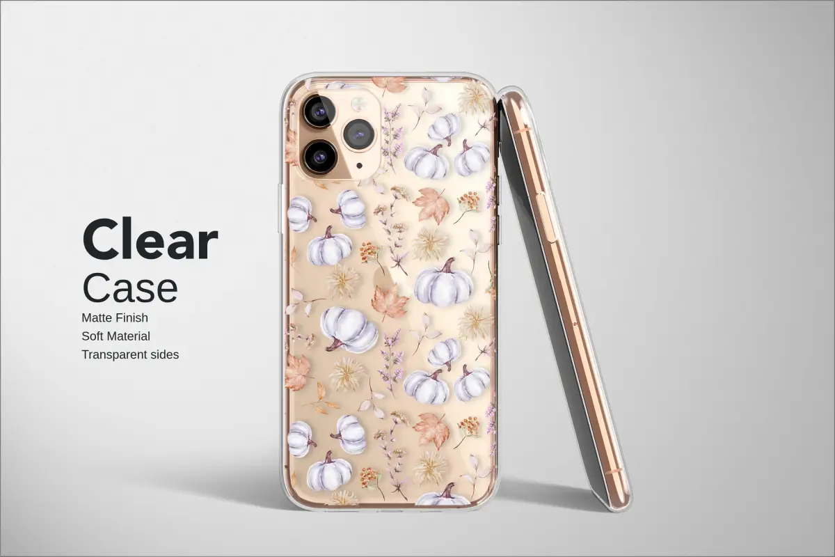 Wrap your most essential companion in the cozy magic of autumn with this enchanting botanical design. Delicate watercolor white pumpkins nestle amongst dusty rose leaves, sprigs of lavender, and cream-colored chrysanthemums, creating a whimsical harvest tapestry that feels like a crisp walk through a secret garden. This cottagecore-inspired accessory is the perfect touch of fall aesthetic for your daily life, a subtle nod to spooky season and the pumpkin spice everything that makes this time of year so special. Designed to be a slim, protective skin for your tech, it lets you carry the charm of a modern farmhouse autumn wherever you go, from the pumpkin patch to a cozy cafe. Choose between a crystal-clear backdrop that lets your device's own color peek through for a light, airy feel, or a moody, dark background for a touch of elegant contrast that makes the pattern pop. It’s a beautiful, unique gift for her, a lovely stocking stuffer, or the perfect treat to celebrate your favorite season in style. Let this charming autumn print keep your connection to the world safe and stylish through all your fall adventures.