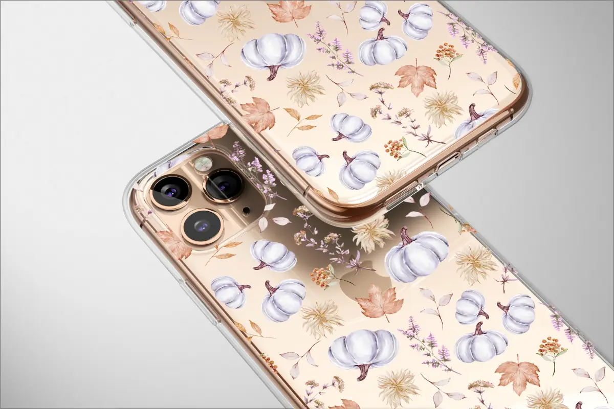 Wrap your most essential companion in the cozy magic of autumn with this enchanting botanical design. Delicate watercolor white pumpkins nestle amongst dusty rose leaves, sprigs of lavender, and cream-colored chrysanthemums, creating a whimsical harvest tapestry that feels like a crisp walk through a secret garden. This cottagecore-inspired accessory is the perfect touch of fall aesthetic for your daily life, a subtle nod to spooky season and the pumpkin spice everything that makes this time of year so special. Designed to be a slim, protective skin for your tech, it lets you carry the charm of a modern farmhouse autumn wherever you go, from the pumpkin patch to a cozy cafe. Choose between a crystal-clear backdrop that lets your device's own color peek through for a light, airy feel, or a moody, dark background for a touch of elegant contrast that makes the pattern pop. It’s a beautiful, unique gift for her, a lovely stocking stuffer, or the perfect treat to celebrate your favorite season in style. Let this charming autumn print keep your connection to the world safe and stylish through all your fall adventures.