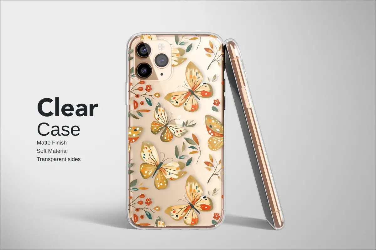 Step into an enchanted garden under the veil of midnight, where golden butterflies dance in the still, quiet air. This captivating design captures a fleeting moment of natural magic, a perfect accessory for the dreamer and nature lover. Each butterfly is rendered with a warm, painterly touch, their wings aglow with hues of marigold, apricot, and rich ochre against the deep, dark backdrop. Delicate sprigs of muted green foliage and pops of rustic red berries weave through the scene, creating a rich tapestry of autumnal beauty. The folk-art inspired style lends a timeless, handcrafted feel, as if a story from an old book has been brought to life. Embrace the cozy, whimsical spirit of cottagecore or the sophisticated, moody vibe of dark academia. This artwork isn't just a pattern; it's an escape, a tiny piece of an enchanted woodland to carry with you. Let this botanical illustration adorn your most essential daily item, transforming it into a personal statement and a thoughtful gift for the bohemian soul in your life. Carry a piece of the midnight meadow and let your imagination take flight.
