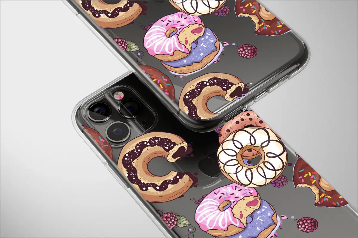 Indulge your senses and sweeten your everyday with this delectable design. Dive into a delicious dreamscape where whimsically illustrated donuts tumble through a vibrant, glitch-striped galaxy. Each treat is a tiny work of art, from the rich chocolate glaze dripping with rainbow sprinkles to the delicate pink icing and creamy white swirls. A pop of cosmic purple, studded with little star-like sprinkles, adds a touch of magic, while juicy raspberries and blueberries are scattered throughout, adding a fresh, fruity twist to this decadent scene. This design is more than just a pretty picture; it's a statement piece that wraps your essential tech in a protective layer of pure joy and personality. Let this playful, foodie-inspired artwork transform your daily carry into a conversation starter. It's the perfect way to express your love for all things sweet and artistic, adding a splash of color and fun to your most-used accessory. An ideal gift for the dessert lover, art enthusiast, or anyone who believes life should be as delightful as a freshly baked donut. Carry a little piece of happiness with you wherever you go and let your unique style shine through.