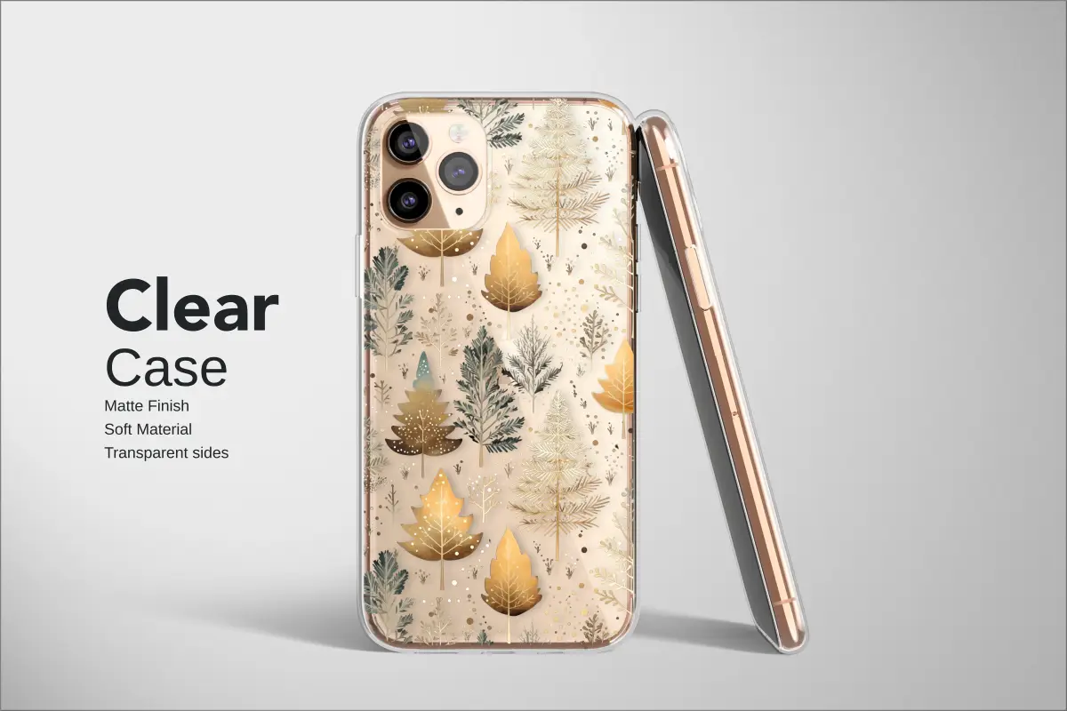 Step into a world of quiet enchantment with this Gilded Midnight Forest design, where elegant trees shimmer against a deep, velvety darkness. Imagine a moonless walk through a secret woodland, where the only light comes from the flora itself. Luminous gold and bronze leaves mingle with delicate pine and fir trees, their branches dusted with what could be the first snowfall or a sprinkle of starlight. The rich, dark backdrop makes each intricate detail pop, from the subtle veining on a golden leaf to the soft, muted glow of teal-green pine needles. This design captures the serene magic of a forest at dusk, a moment suspended in time where nature's beauty is illuminated by an unseen, ethereal light. This captivating pattern transforms your everyday essential into a piece of wearable art, a personal portal to a peaceful, mystical grove. It speaks to both the cozy allure of cottagecore and a sophisticated, dark botanical aesthetic. It’s perfect for the nature lover, the dreamer, or anyone who finds profound beauty in the quiet moments of the changing seasons. Carry a piece of this enchanted forest with you and let its subtle elegance and whimsical charm add a touch of magic to your daily adventures. This unique, artist-designed artwork makes a thoughtful and beautiful gift for her, or a special treat to adorn your own favorite tech.