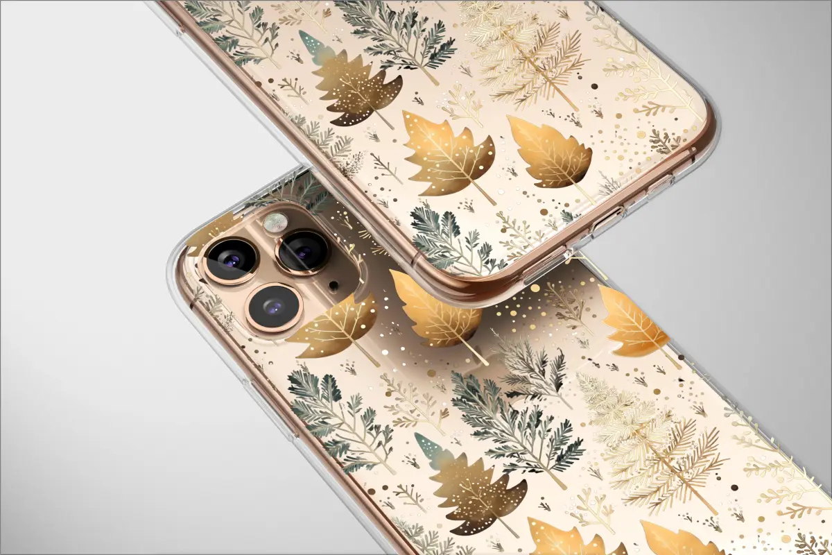 Step into a world of quiet enchantment with this Gilded Midnight Forest design, where elegant trees shimmer against a deep, velvety darkness. Imagine a moonless walk through a secret woodland, where the only light comes from the flora itself. Luminous gold and bronze leaves mingle with delicate pine and fir trees, their branches dusted with what could be the first snowfall or a sprinkle of starlight. The rich, dark backdrop makes each intricate detail pop, from the subtle veining on a golden leaf to the soft, muted glow of teal-green pine needles. This design captures the serene magic of a forest at dusk, a moment suspended in time where nature's beauty is illuminated by an unseen, ethereal light. This captivating pattern transforms your everyday essential into a piece of wearable art, a personal portal to a peaceful, mystical grove. It speaks to both the cozy allure of cottagecore and a sophisticated, dark botanical aesthetic. It’s perfect for the nature lover, the dreamer, or anyone who finds profound beauty in the quiet moments of the changing seasons. Carry a piece of this enchanted forest with you and let its subtle elegance and whimsical charm add a touch of magic to your daily adventures. This unique, artist-designed artwork makes a thoughtful and beautiful gift for her, or a special treat to adorn your own favorite tech.