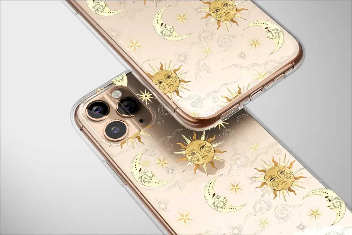 Carry a piece of the cosmos with you and adorn your daily essentials with this enchanting celestial design. It captures the timeless, mystical ballet between the sun and moon, set against a deep, star-dusted night sky. Rendered in a stunning vintage illustration style, golden suns with serene, knowing faces radiate a warm, divine energy, while elegant crescent moons gaze peacefully across the ethereal expanse, embodying quiet wisdom. Delicate, eight-pointed stars and swirling, dreamlike clouds complete this magical tableau, creating a profound sense of ancient wonder and esoteric knowledge. The rich, dramatic contrast of shimmering gold against the infinite black backdrop evokes the powerful duality of day and night, the balance of masculine and feminine forces, and the intricate harmony of the universe. Perfect for the modern mystic, the astrology aficionado, or anyone with a free-spirited, bohemian soul, this artwork is more than just a beautiful pattern; it’s a personal talisman. Let this celestial art wrap your favorite device in cosmic elegance, serving as a daily reminder of the magic that resides in the heavens above and within you. It’s an unforgettable gift for a kindred spirit or a special treat to elevate your everyday style with a touch of spiritual grace and witchy charm.