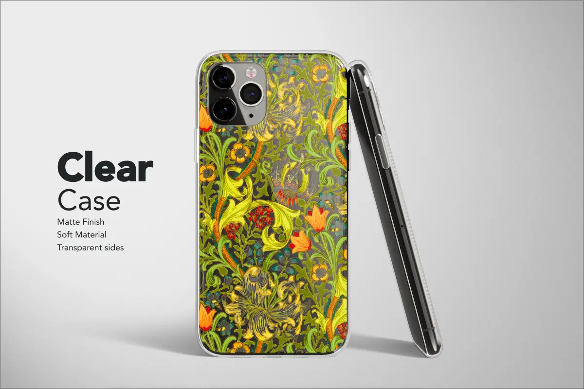 Immerse yourself in the enduring beauty of the Arts and Crafts movement with this exquisite botanical design, a stunning tribute to the timeless artistry of William Morris. This captivating accessory wraps your daily essential in a sophisticated, nature-inspired tapestry, perfect for anyone with a vintage aesthetic. Lush, chartreuse green acanthus leaves and scrolling vines create a rhythmic, flowing background for a stunning display of garden florals that seem to dance across the surface. Majestic, stylized lilies in shades of golden yellow and creamy white command attention, their intricate petals unfurling with classic elegance. Bursts of vibrant orange tulips and delicate clusters of tiny red and blue wildflowers add joyful pops of color, creating a rich and harmonious composition reminiscent of a treasured vintage English garden print. This detailed wildflower meadow pattern is a perfect expression of the cottagecore, grandmacore, or light academia aesthetic, making it an ideal statement piece for the discerning art lover or history enthusiast. It serves as a wonderfully thoughtful and unique gift for a teacher, gardener, mom, or anyone who appreciates classic, intricate design. By choosing this elegant floral print, you’re not just selecting a beautiful accessory; you’re carrying a small piece of art history, a celebration of natural forms and timeless style that brings a touch of refined sophistication to your everyday life. Let this classic pattern transform your most-used gadget into a unique work of art that protects and beautifies in equal measure.