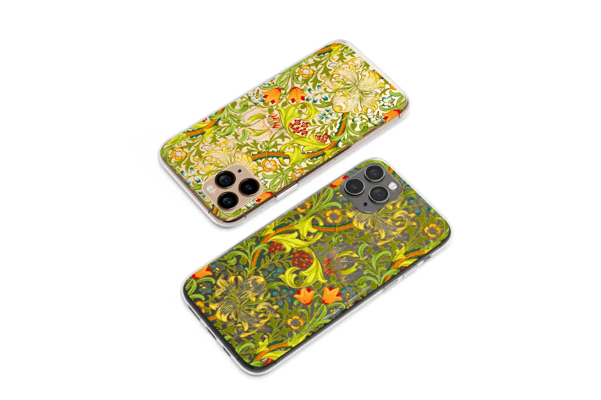Immerse yourself in the enduring beauty of the Arts and Crafts movement with this exquisite botanical design, a stunning tribute to the timeless artistry of William Morris. This captivating accessory wraps your daily essential in a sophisticated, nature-inspired tapestry, perfect for anyone with a vintage aesthetic. Lush, chartreuse green acanthus leaves and scrolling vines create a rhythmic, flowing background for a stunning display of garden florals that seem to dance across the surface. Majestic, stylized lilies in shades of golden yellow and creamy white command attention, their intricate petals unfurling with classic elegance. Bursts of vibrant orange tulips and delicate clusters of tiny red and blue wildflowers add joyful pops of color, creating a rich and harmonious composition reminiscent of a treasured vintage English garden print. This detailed wildflower meadow pattern is a perfect expression of the cottagecore, grandmacore, or light academia aesthetic, making it an ideal statement piece for the discerning art lover or history enthusiast. It serves as a wonderfully thoughtful and unique gift for a teacher, gardener, mom, or anyone who appreciates classic, intricate design. By choosing this elegant floral print, you’re not just selecting a beautiful accessory; you’re carrying a small piece of art history, a celebration of natural forms and timeless style that brings a touch of refined sophistication to your everyday life. Let this classic pattern transform your most-used gadget into a unique work of art that protects and beautifies in equal measure.