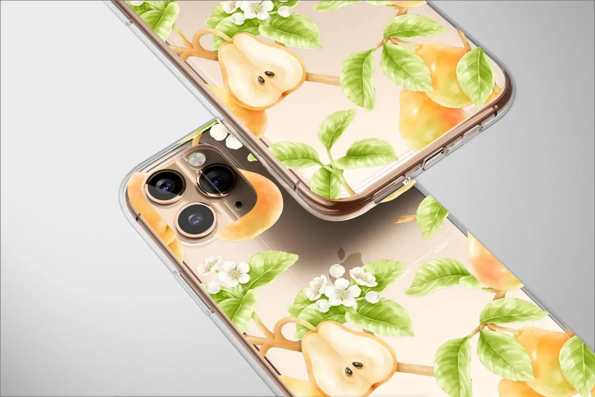 Wrap your daily essentials in the timeless beauty of a sun-drenched pear orchard, captured in exquisite watercolor detail. This enchanting design celebrates the perfect moment of harvest, with luscious golden pears hanging heavy on winding branches, their skins blushing with a soft, peachy glow. Delicate white blossoms dot the scene like tiny stars, promising future sweetness, while vibrant green leaves create a stunning, dramatic contrast against the deep black canvas. The gentle, painterly style lends a dreamy, cottagecore quality, making each pear and petal come to life with subtle color gradations. Imagine carrying a piece of a serene, secret garden with you, a reminder of nature's simple elegance. This botanical artwork is perfect for adding a touch of rustic farmhouse charm or sophisticated dark floral aesthetic to your everyday style. It’s more than just an accessory; it’s a wearable piece of art that speaks of quiet moments and natural beauty, making it an unforgettable gift for the nature lover, gardener, or art enthusiast in your life.