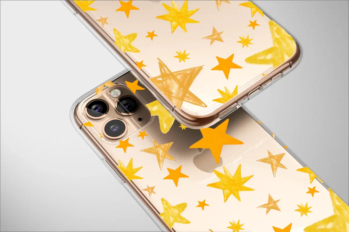 Carry a pocketful of starlight wherever you go with this enchanting celestial design. Inspired by the magic of a clear midnight sky, this pattern features a whimsical scattering of hand-drawn stars, each one unique and bursting with personality. Rendered in warm shades of golden yellow and rich amber, the stars pop against a deep black canvas, evoking the cozy feeling of stargazing on a summer night. The charming, crayon-like texture adds a touch of nostalgic, artistic flair, making it feel like a personal doodle brought to life. This isn't just an accessory; it's a piece of wearable art that celebrates wonder, dreams, and the simple joy of looking up. Perfect for the dreamer, the artist, or anyone who wants to add a sprinkle of cosmic magic to their daily essentials. Let this design be your constant reminder to shine bright and never lose your sense of wonder. It’s a unique gift for anyone who appreciates celestial aesthetics and handcrafted charm, transforming an everyday object into a statement of imagination.