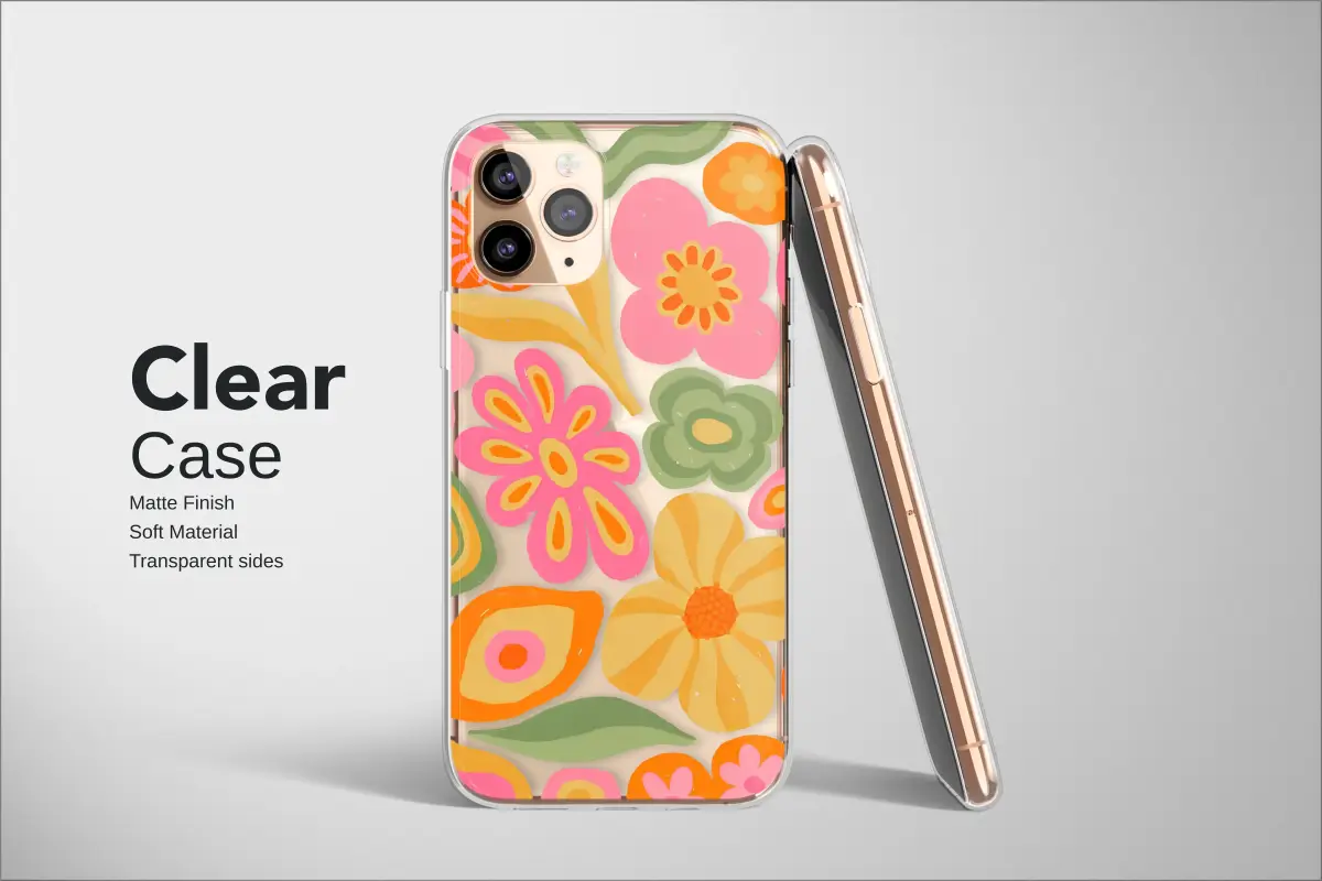 Home Phone Cases iPhone 12 Pro Max Clear Groovy Garden Retro Floral Art Phone Case