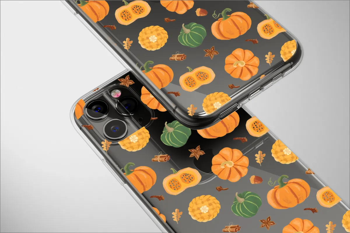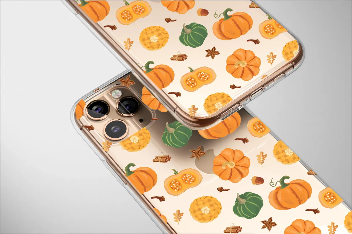Wrap yourself in the comforting embrace of autumn with this enchanting design, a visual ode to the coziest season of all. Imagine a delightful harvest medley dancing across a deep, night-sky backdrop, celebrating all things fall. Plump orange pumpkins and rich green gourds nestle amongst freshly baked pumpkin pies, their golden lattice crusts promising warmth and sweetness. The air feels alive with the fragrant whispers of bundled cinnamon sticks, star anise, and aromatic cloves, creating a sensory tapestry of seasonal delights. Golden oak leaves and tiny acorns scatter between them, capturing the very essence of a perfect walk through a fall forest. This artwork is more than just a pattern; it's a feeling. It's the satisfying crunch of leaves underfoot, the cozy warmth of a favorite sweater, and the delicious scent of Thanksgiving baking wafting from the kitchen. It’s a celebration of the golden season, designed to bring a touch of harvest magic and hygge comfort to your everyday essentials. Let this charming illustration be your daily reminder of crisp air, warm spices, and cherished autumn memories. It's the perfect way to personalize your favorite accessory or a thoughtful gift for the fall lover in your life, encapsulating the pure joy of pumpkin spice and everything nice.